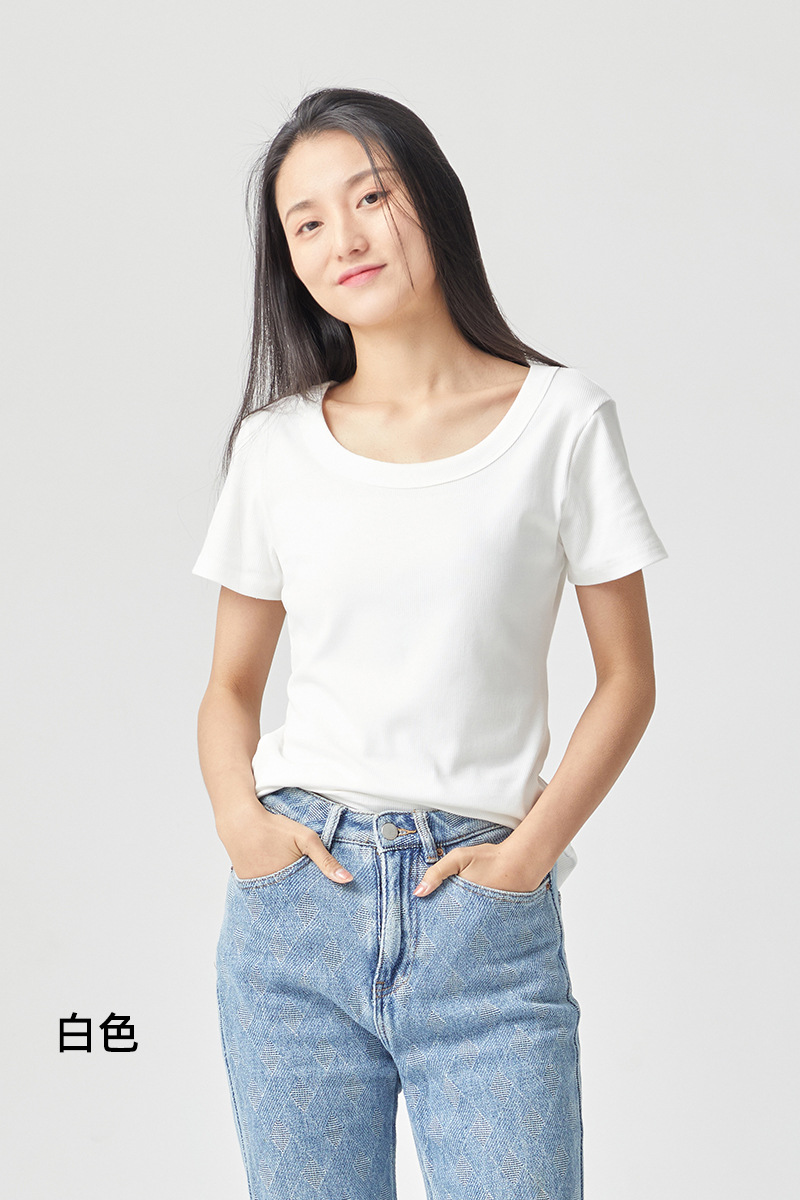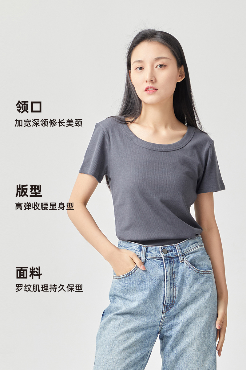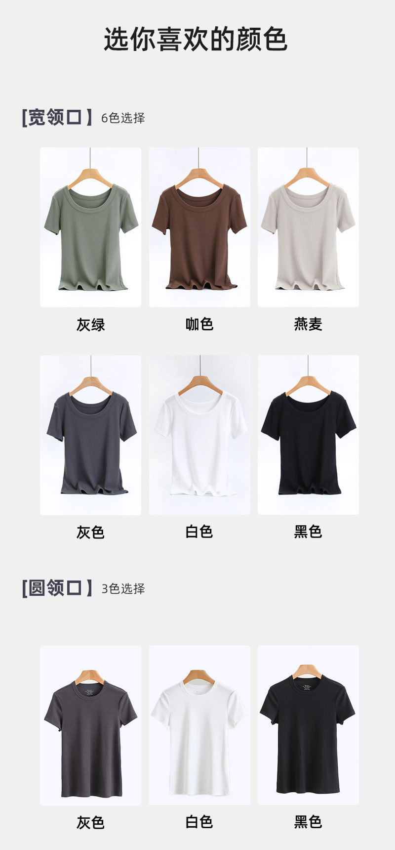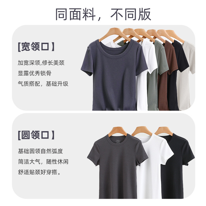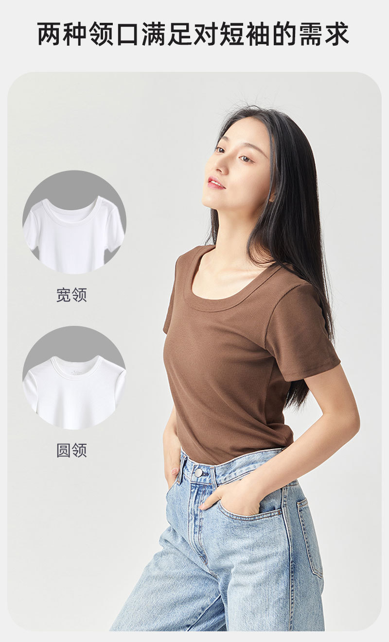 【领口超显瘦!】大圆领修身显瘦短袖纯色