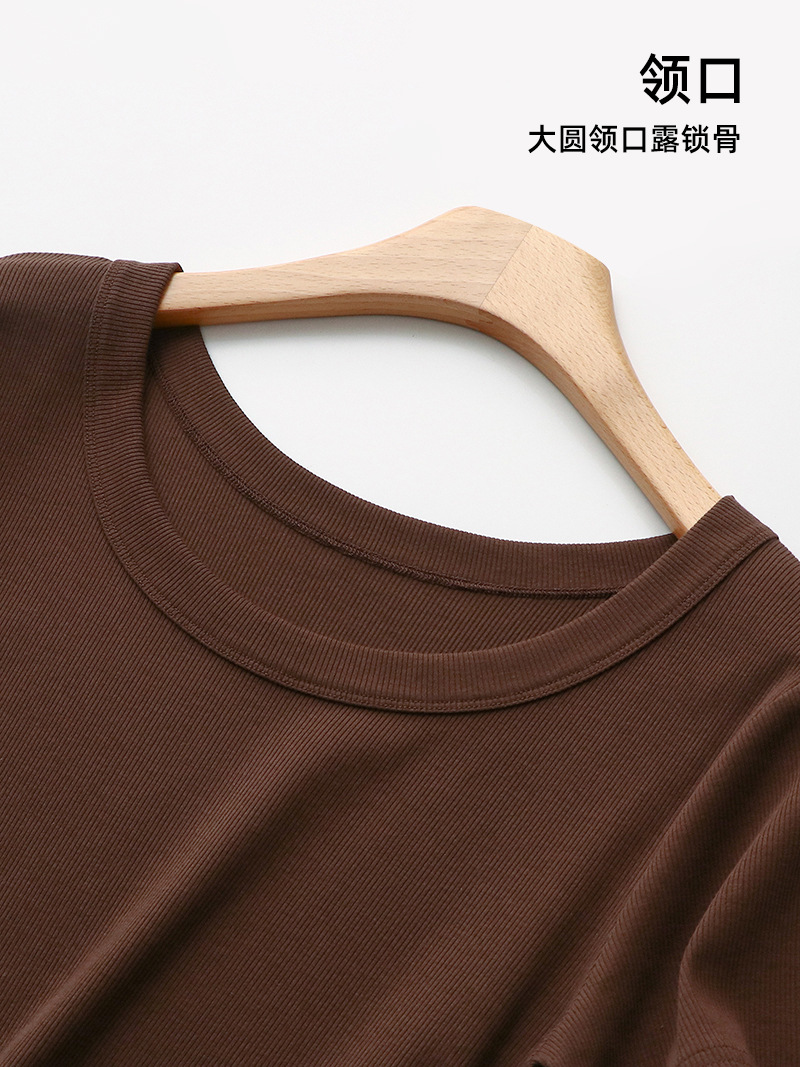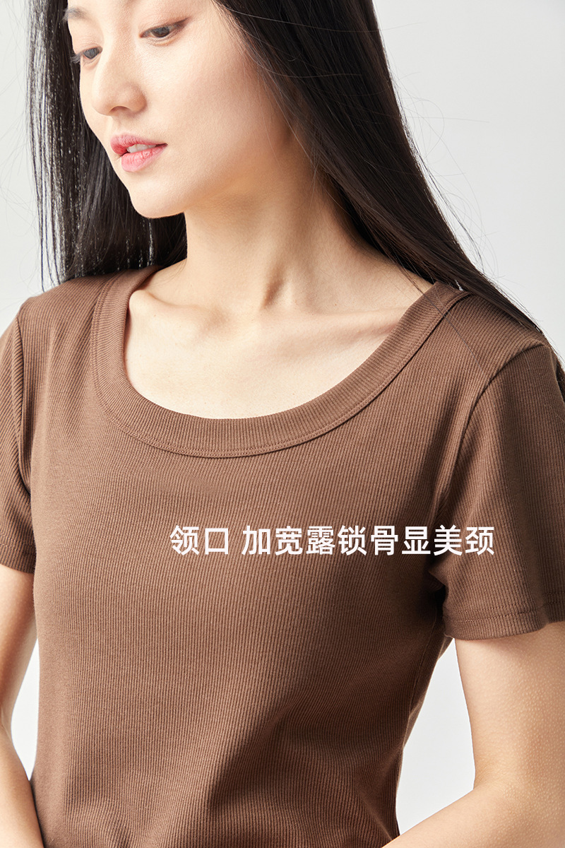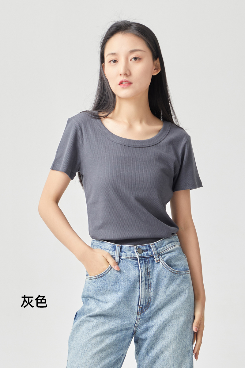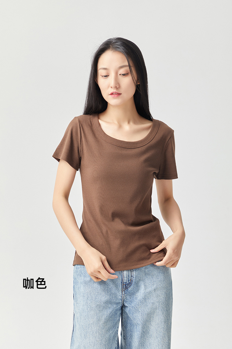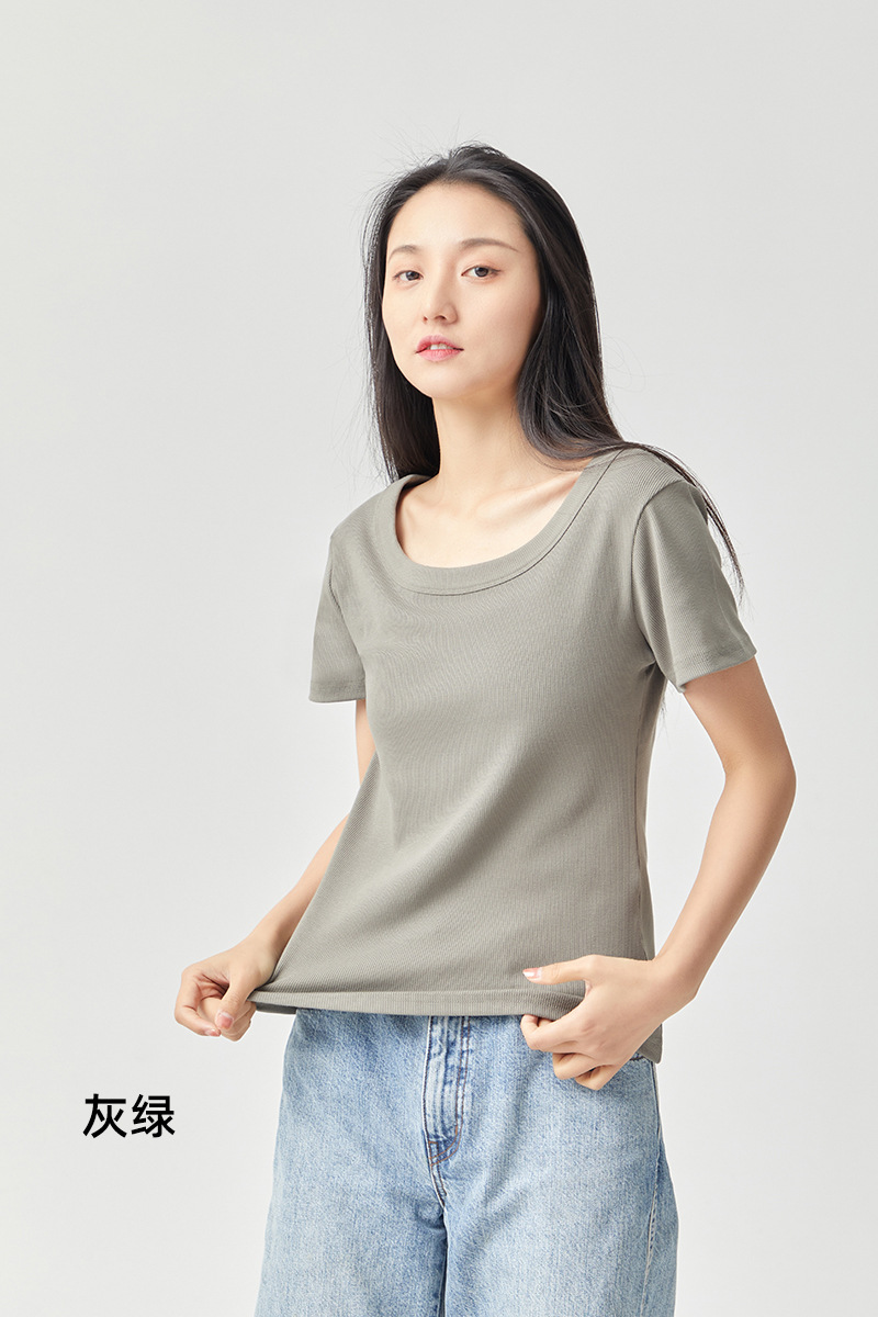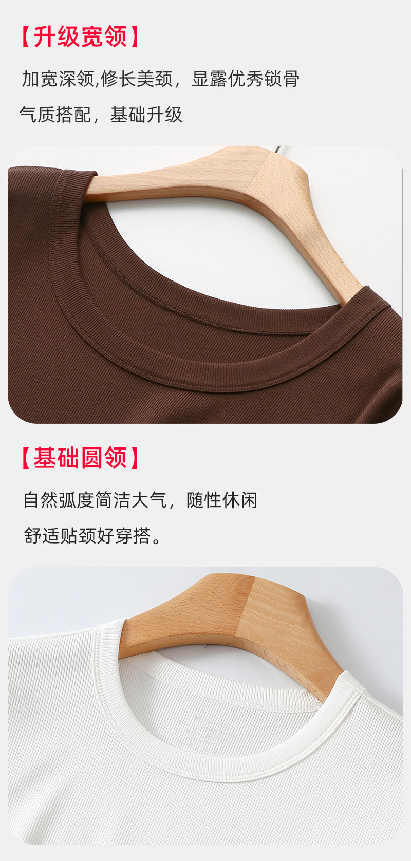 【领口超显瘦!】大圆领修身显瘦短袖纯色
