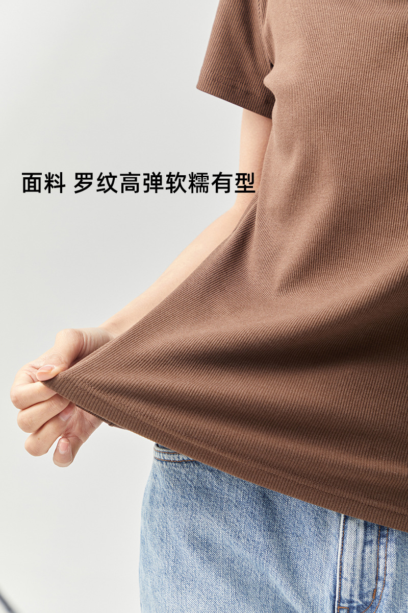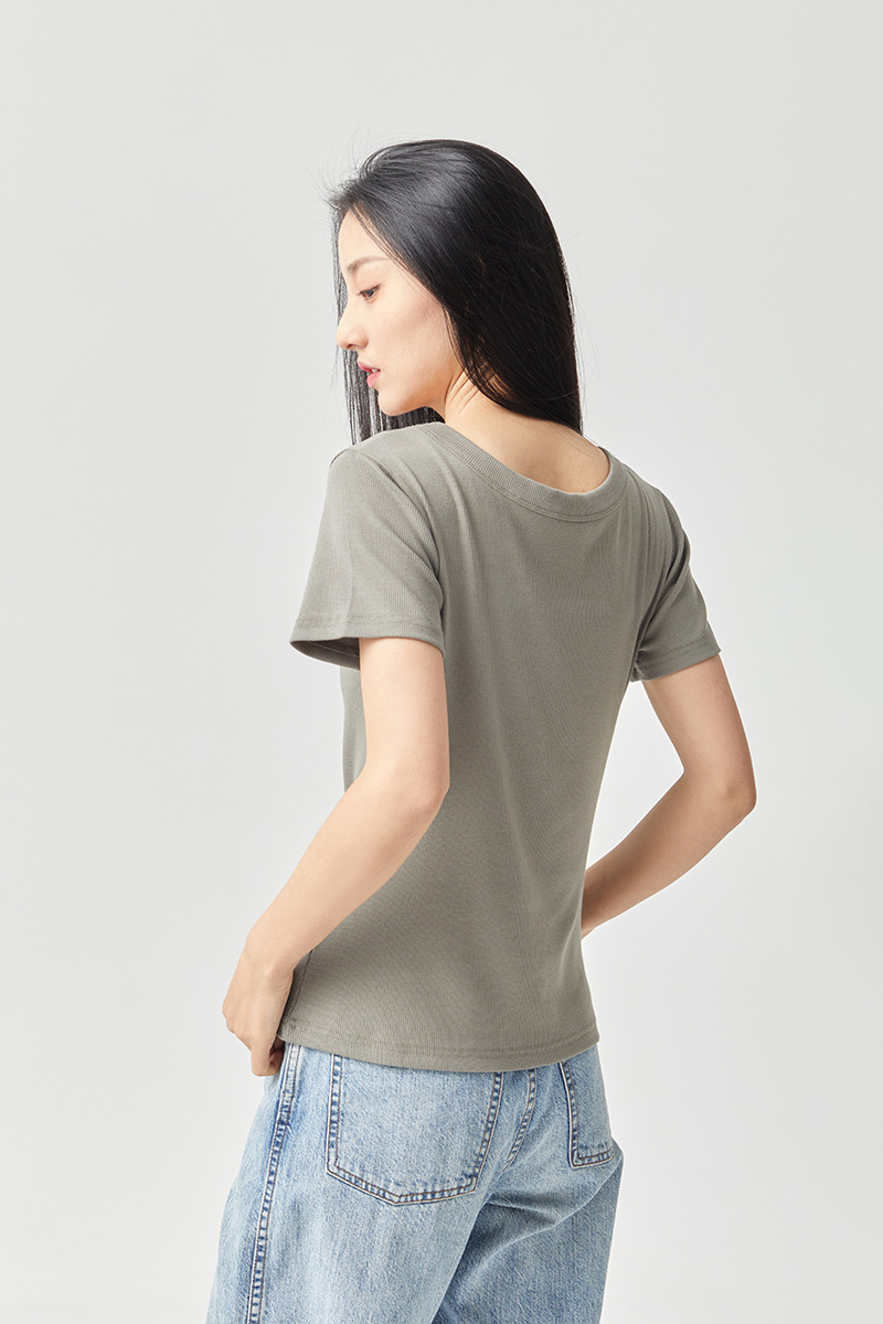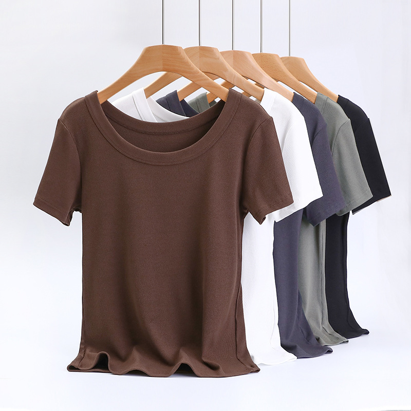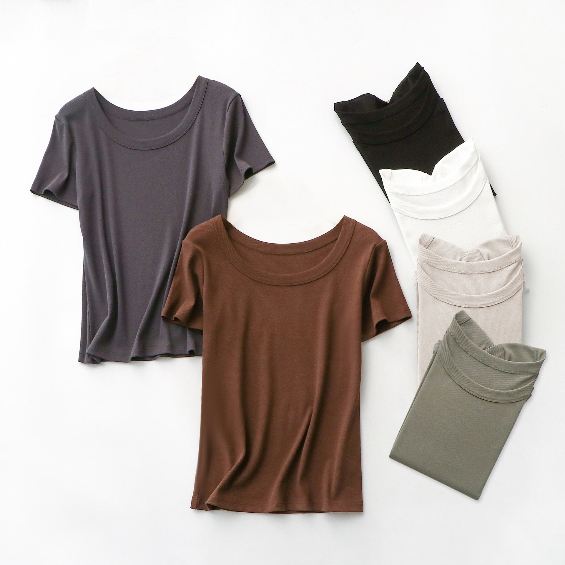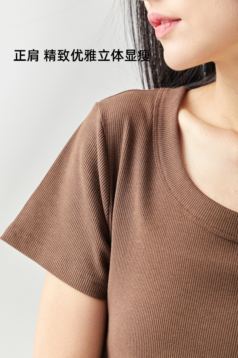 【领口超显瘦!】大圆领修身显瘦短袖纯色