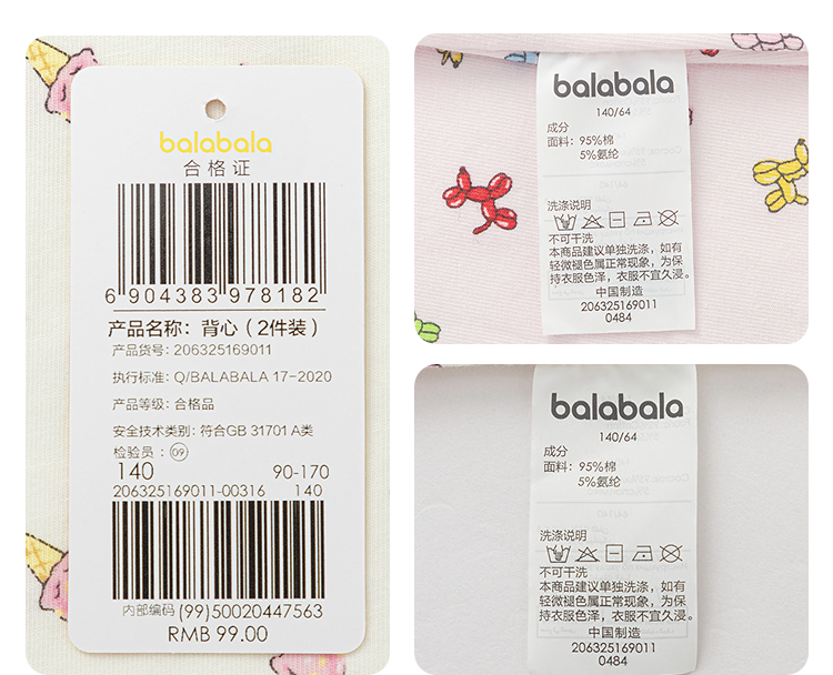 【商场同款】巴拉巴拉宝宝背心秋季女童打底睡衣儿童小内衣两件装