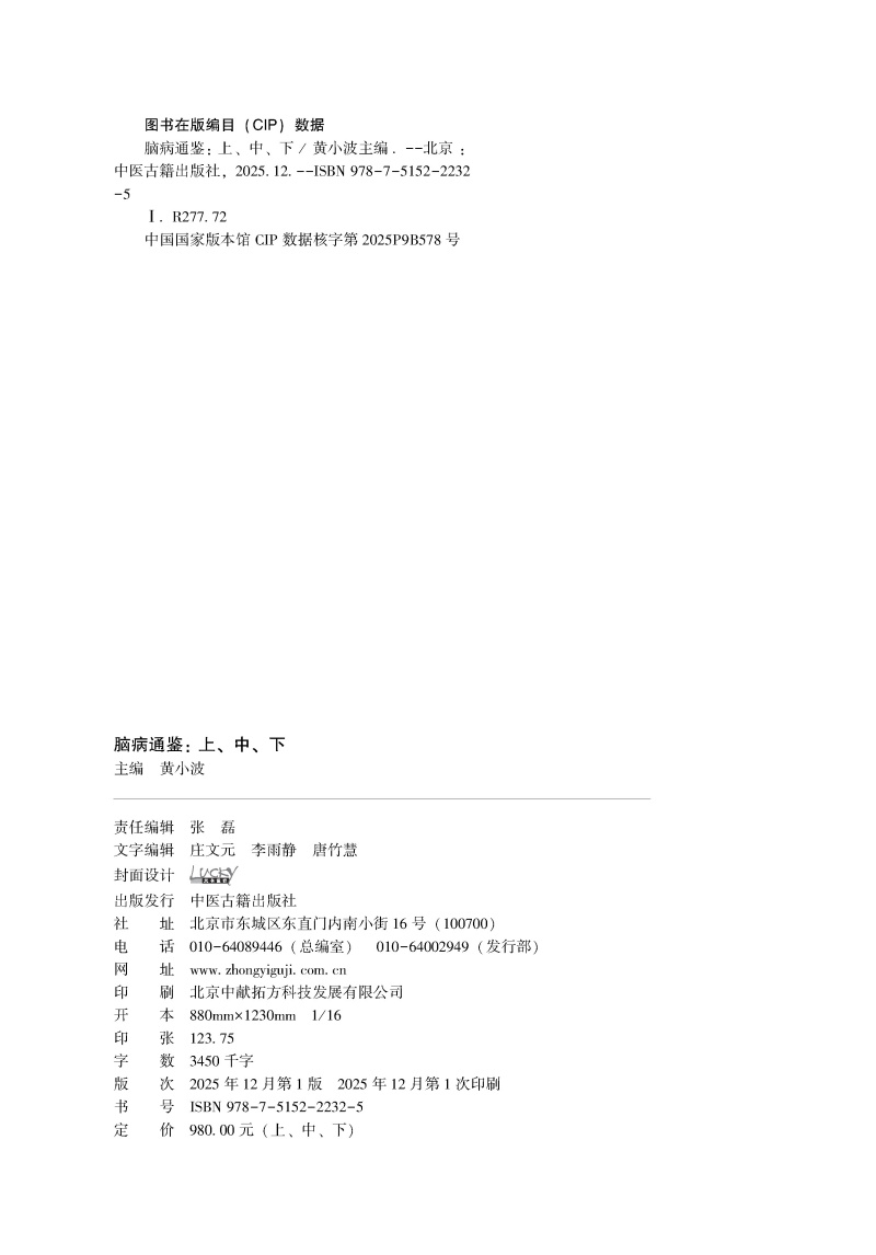 书名:全3册 脑病通鉴(上、中、下)