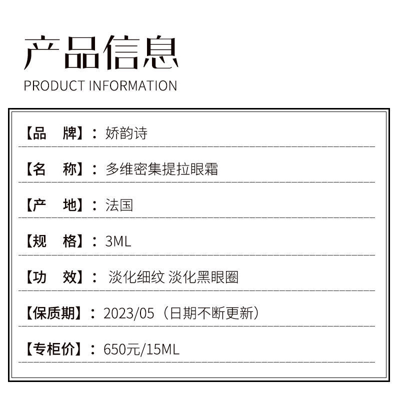 【爆款超低价预售 急单慎拍】娇韵诗多维密集提拉眼霜3ml 淡化细纹黑眼圈紧致 国内专柜小样