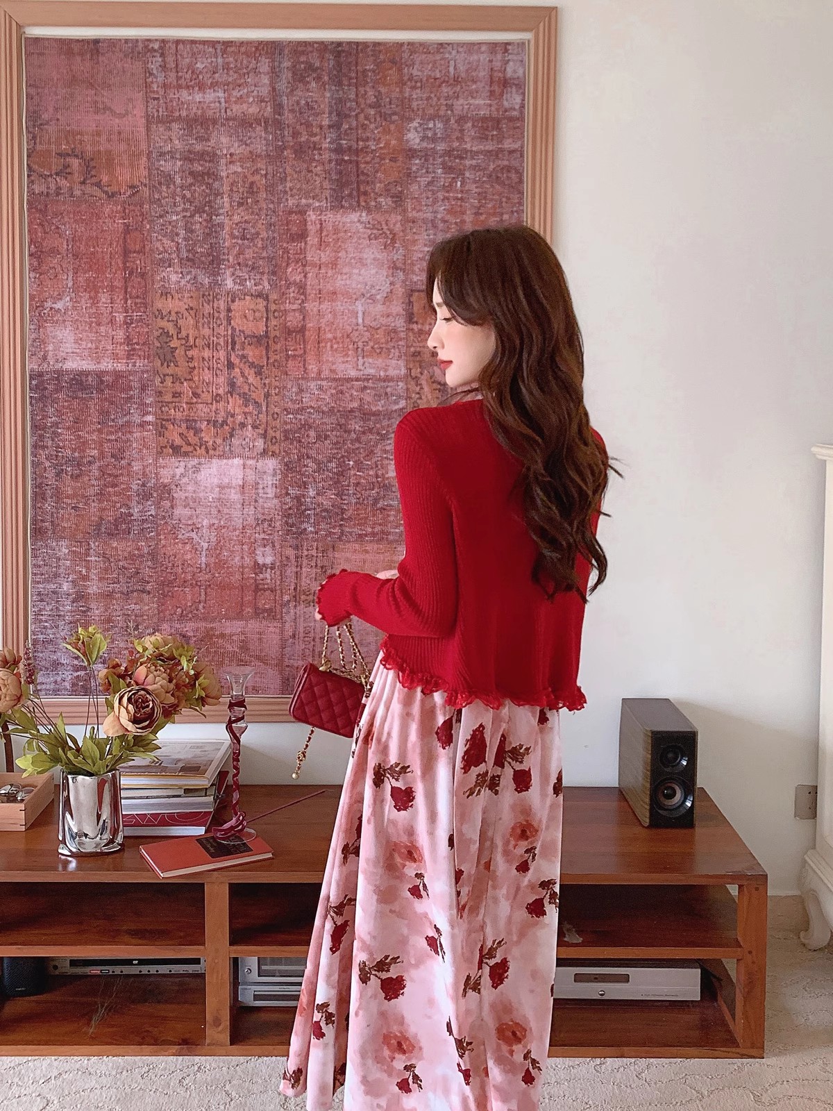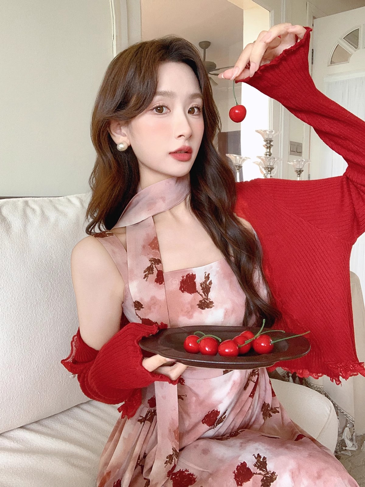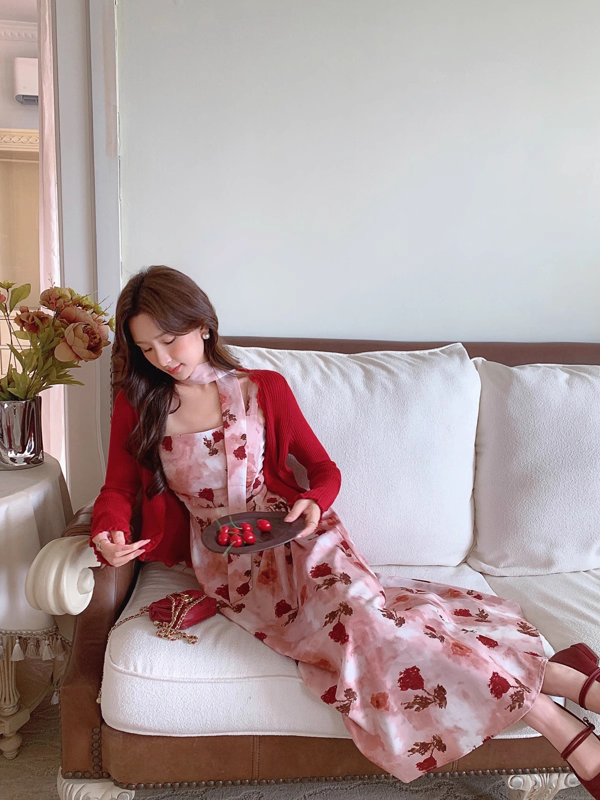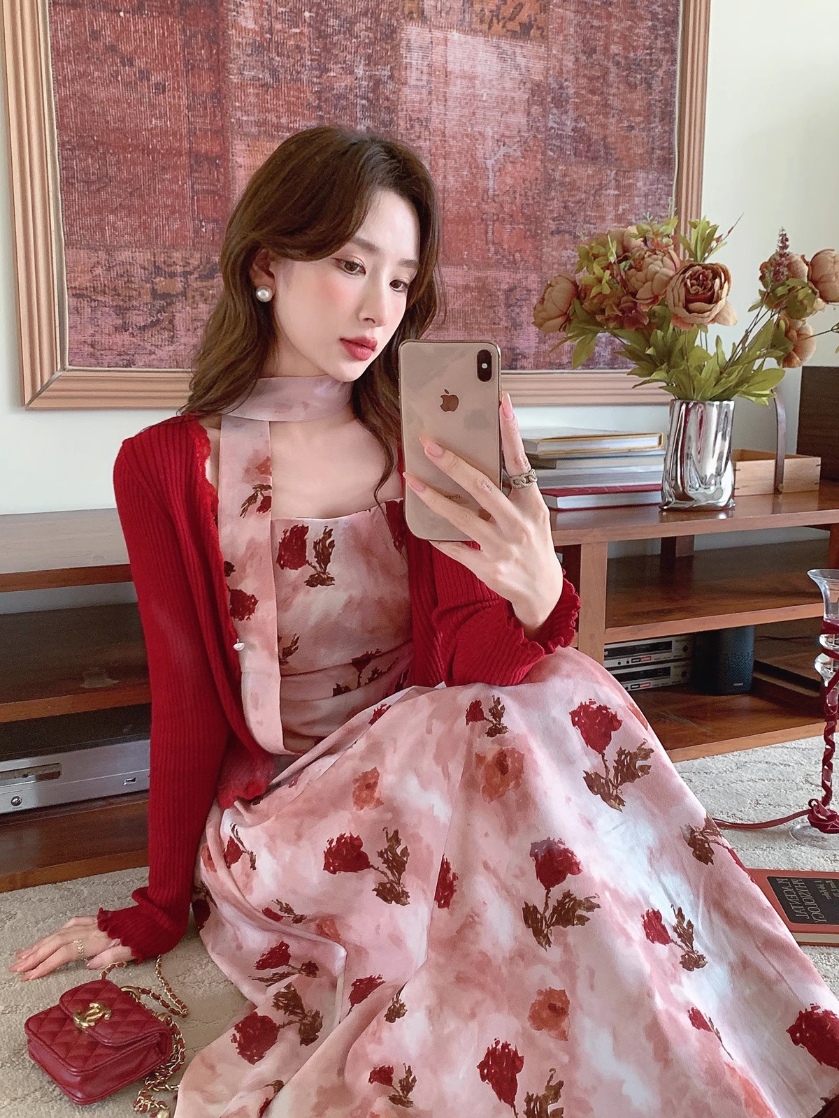 张心子【雾色玫瑰】法式浪漫印花雪纺吊带连衣裙女秋季新款长裙仙 U2408081