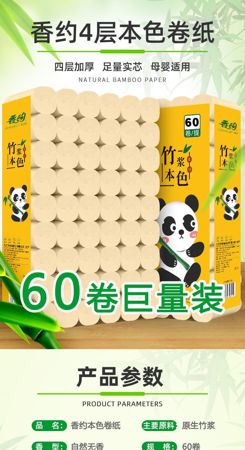 【爆款超低价预售 急单慎拍】【7斤60卷大粗卷够用1年】竹浆本色卫生纸卷纸纸巾12卷批发厕纸