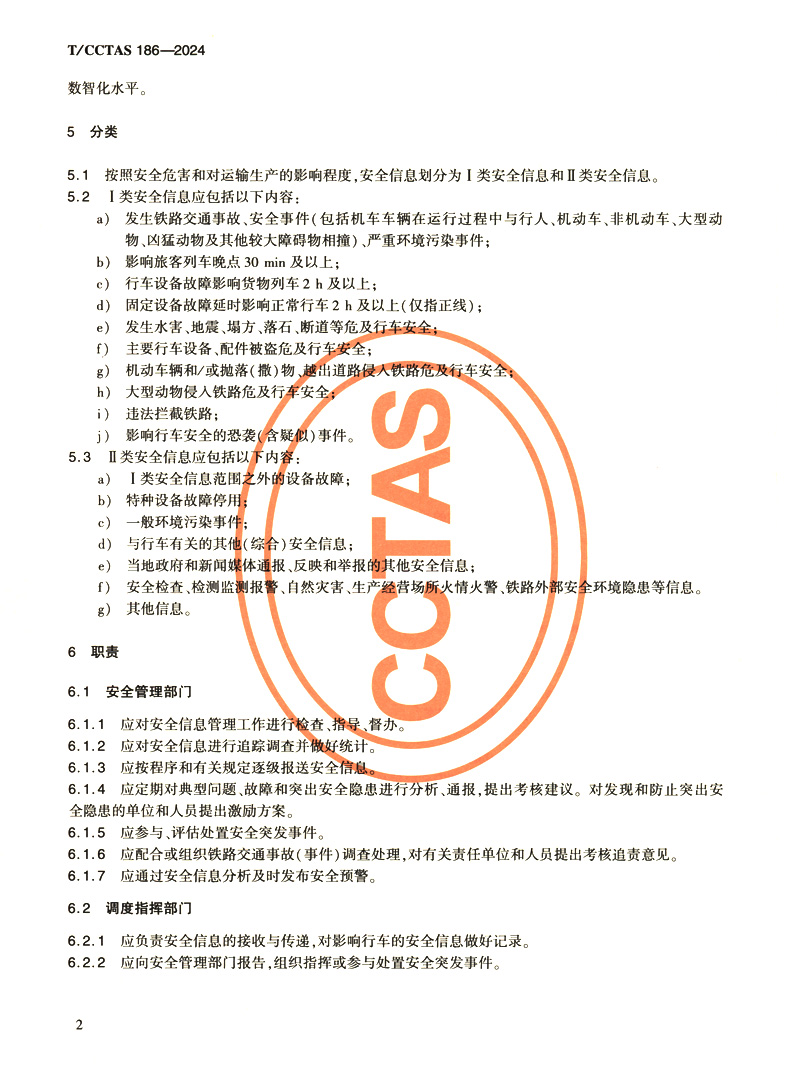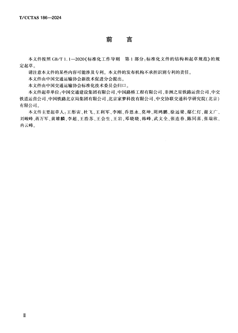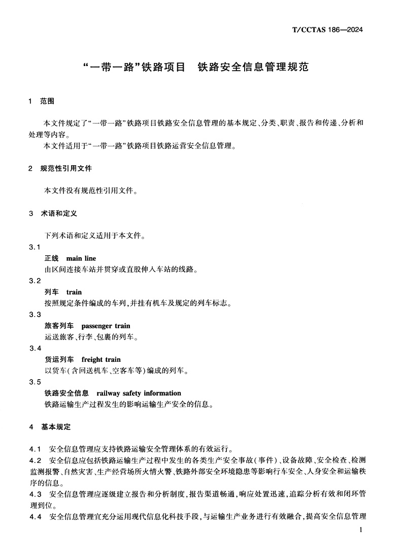 书名:“一带一路”铁路项目 铁路安全信息管理规范T/CCTAS 186—2024