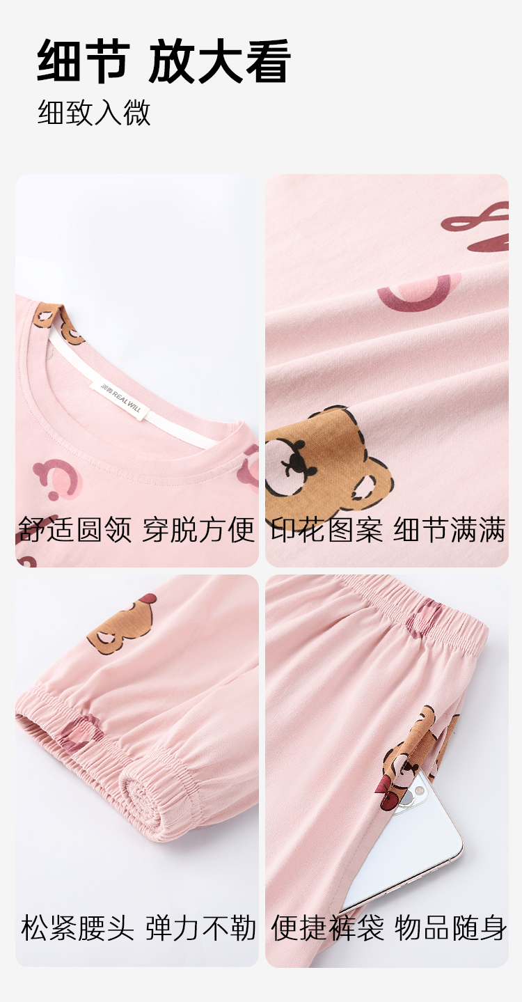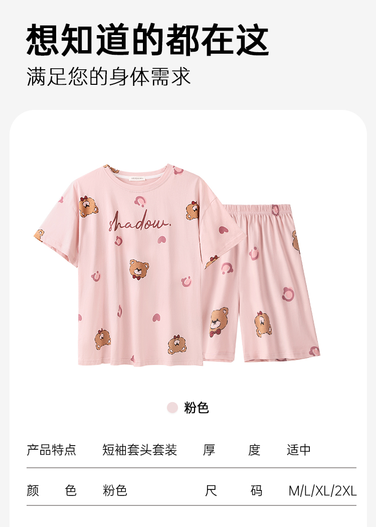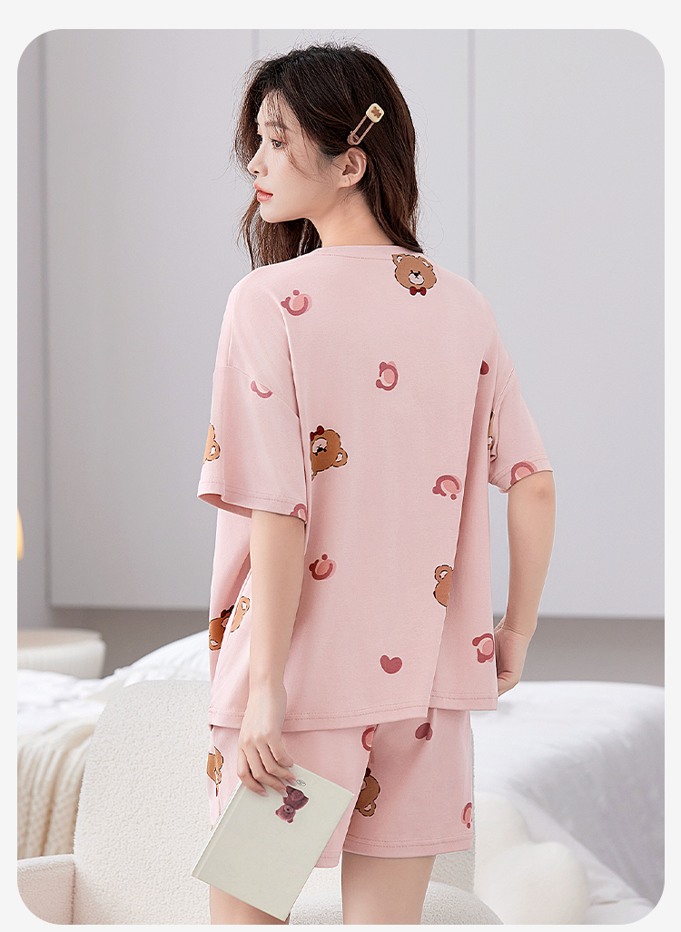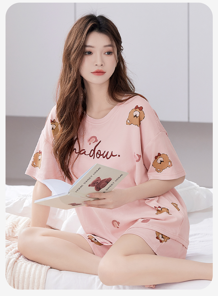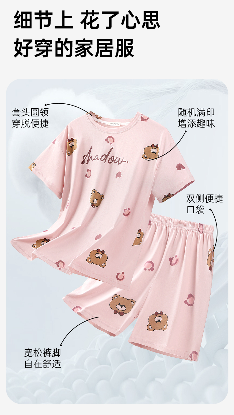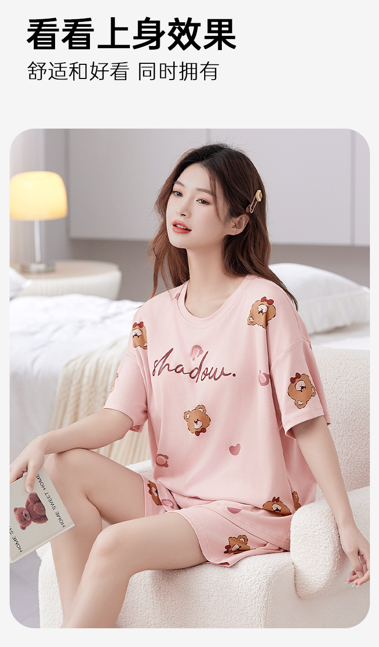 暖暖心窝 家居服(VIP) 女士睡衣纯棉100%棉夏季薄款卡通圆领短袖可外穿家居服套装