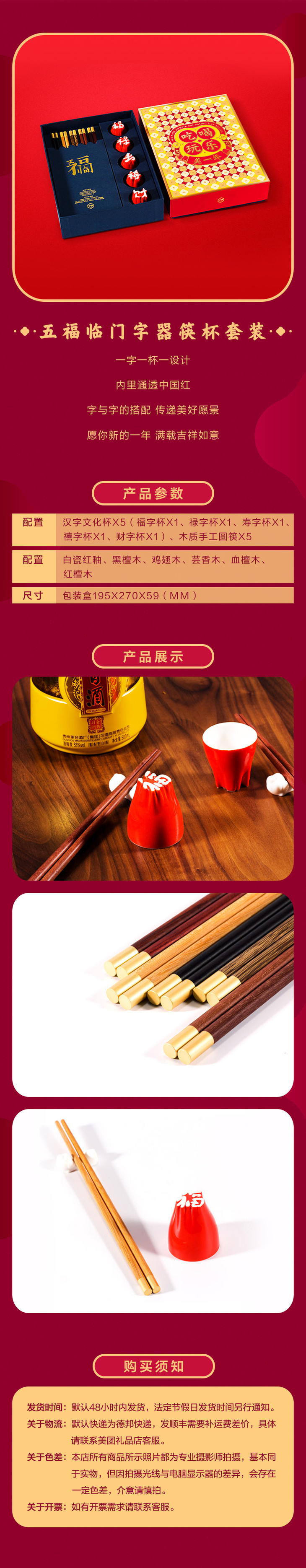 五福临门 字器筷杯套装
