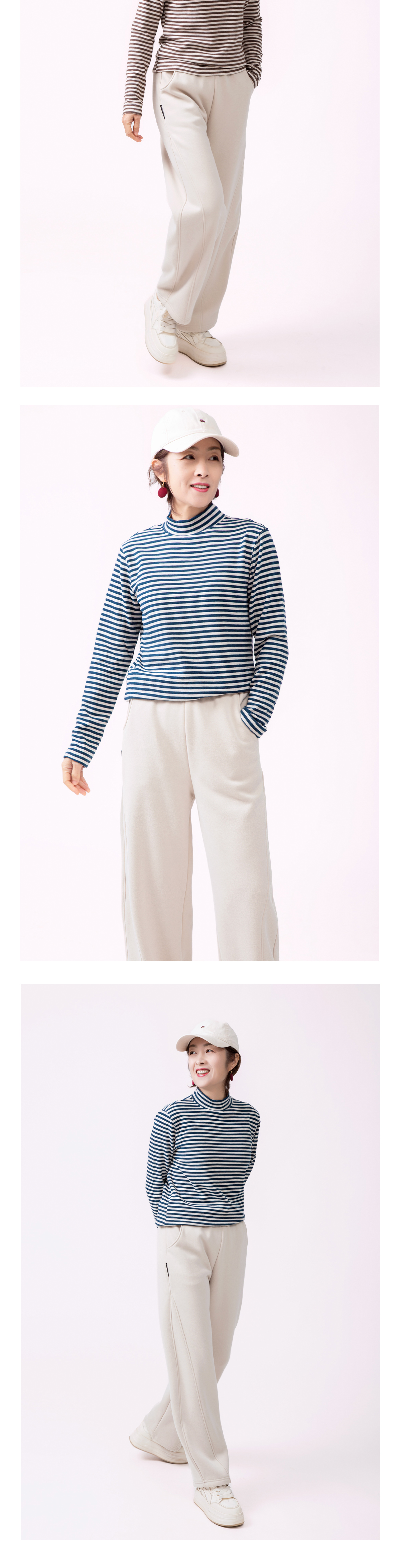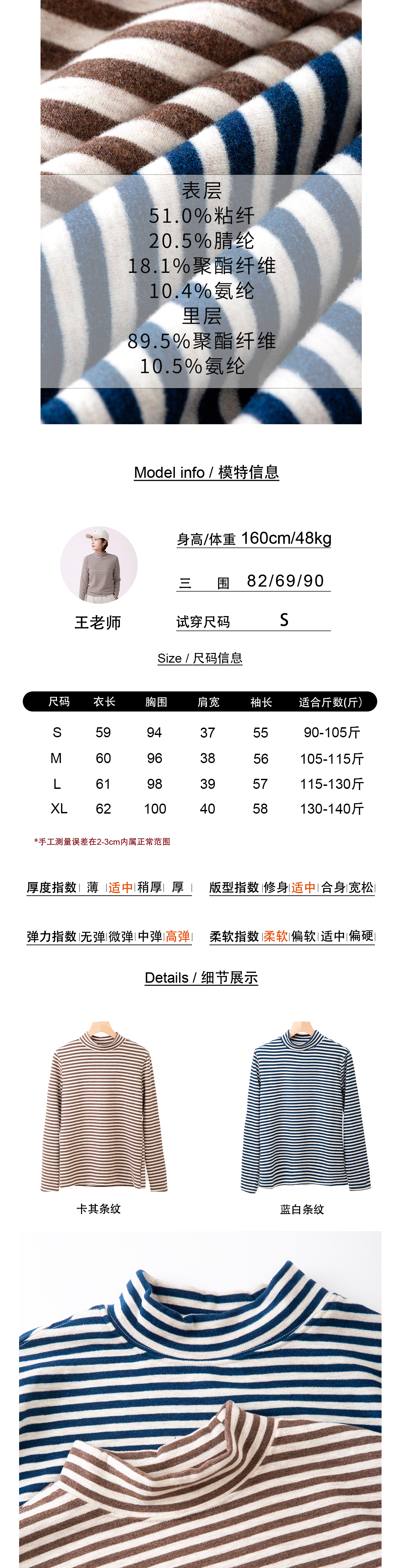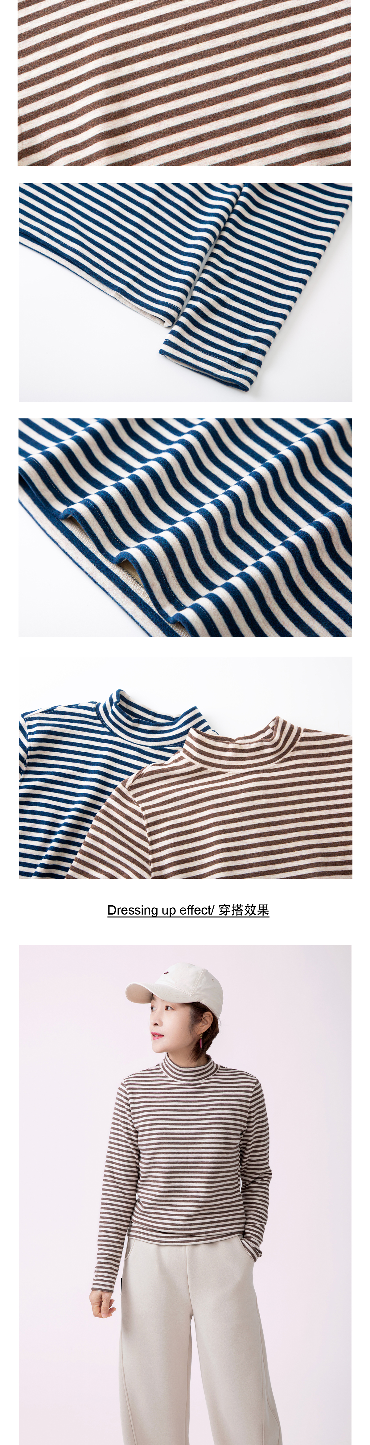 双面绒条纹打底衫