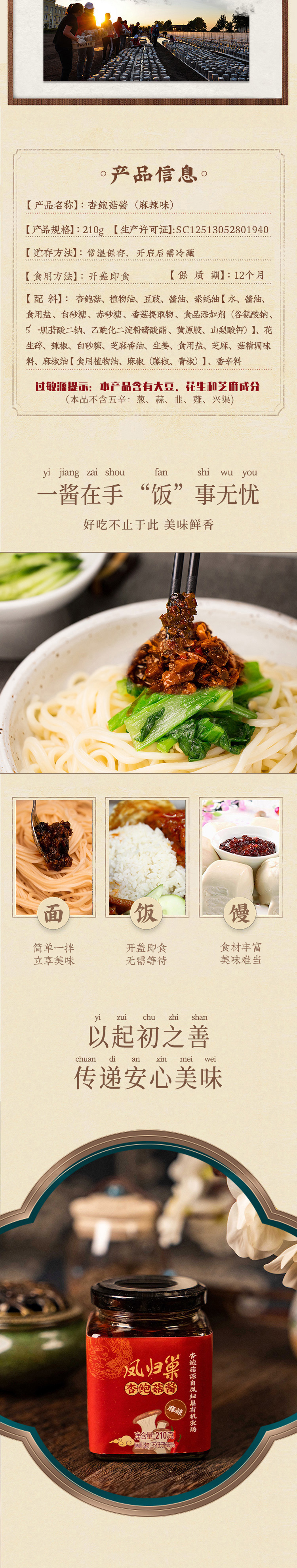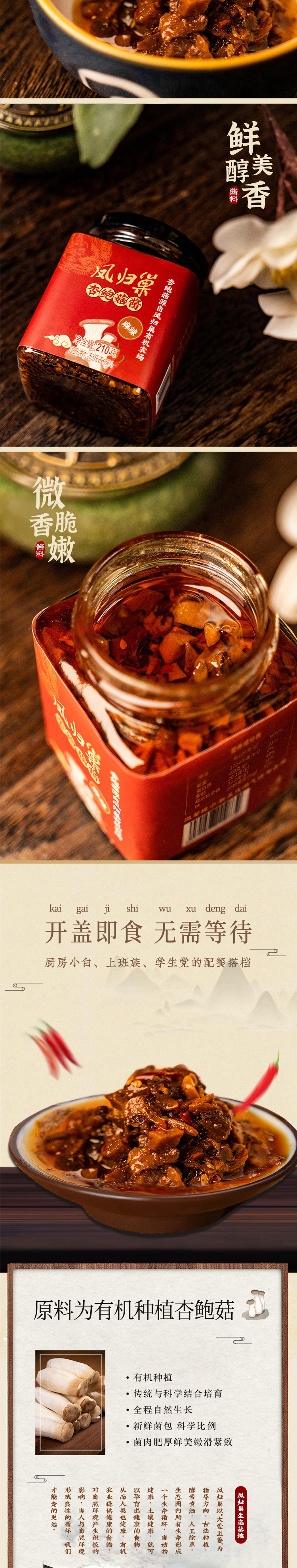 凤归巢 麻辣杏鲍菇酱 210g 下饭好帮手 拌面拌饭