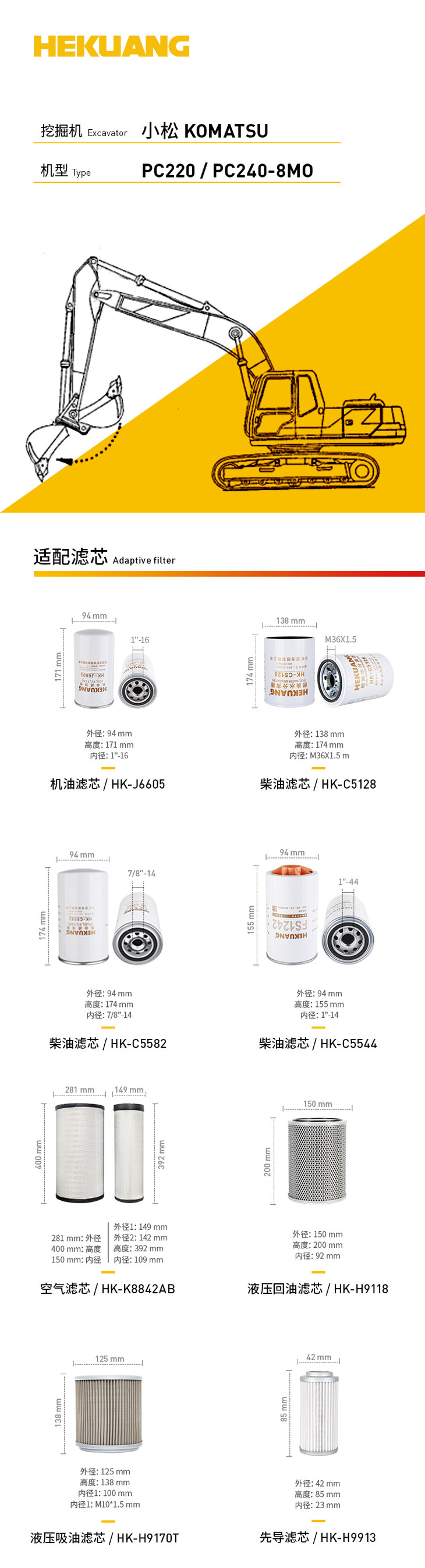 小松PC220/240-8MO挖掘机滤芯 机油柴油空气滤芯 液压油先导滤芯