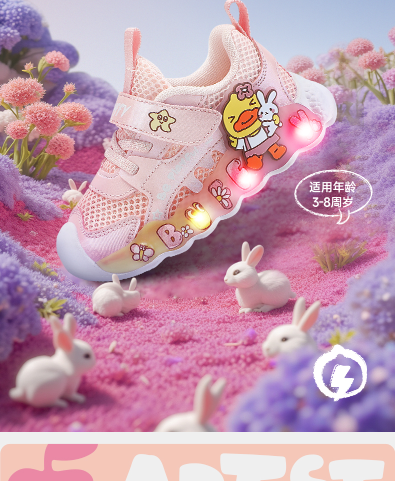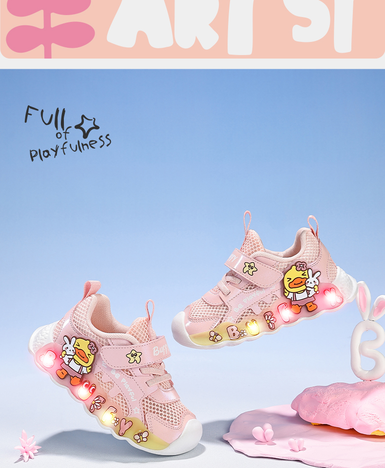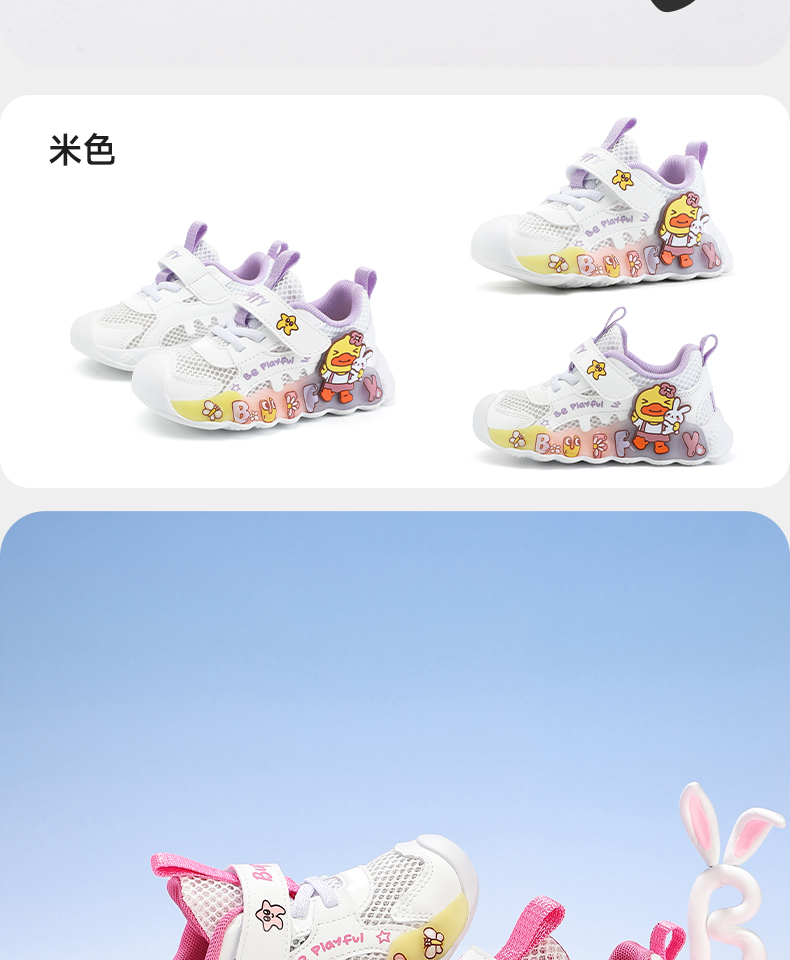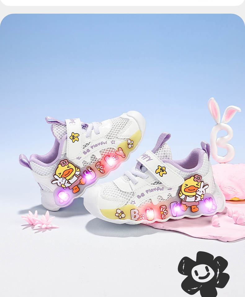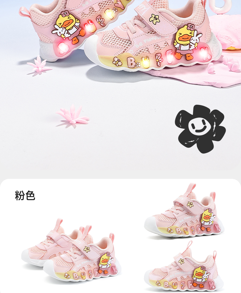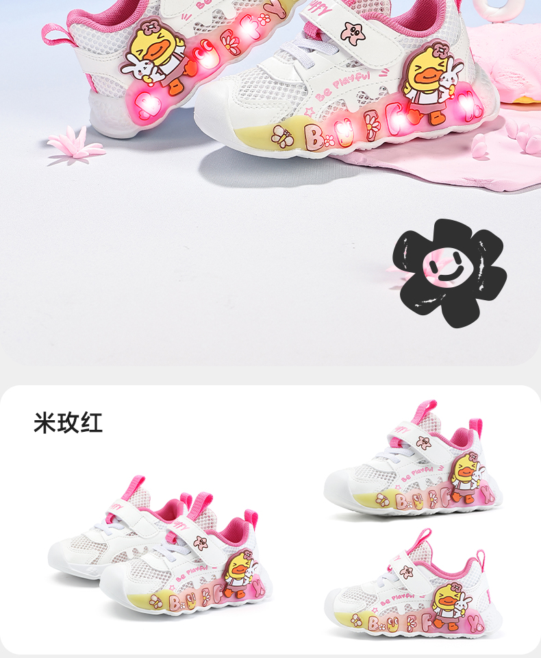 B.Duck小黄鸭童鞋女童运动鞋夏季发光亮灯鞋透气网面鞋潮24-30 F1686809