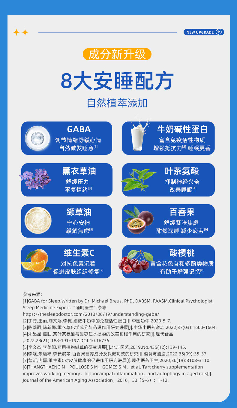 🔻由原先的四重助眠配方升级为八重助眠配方