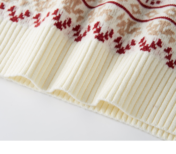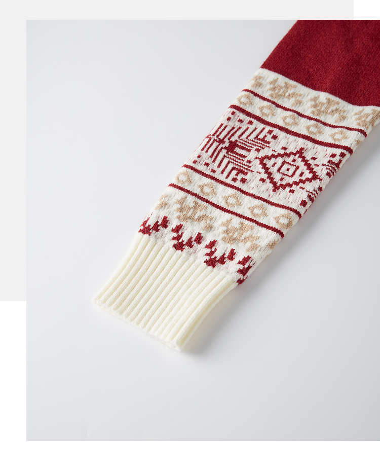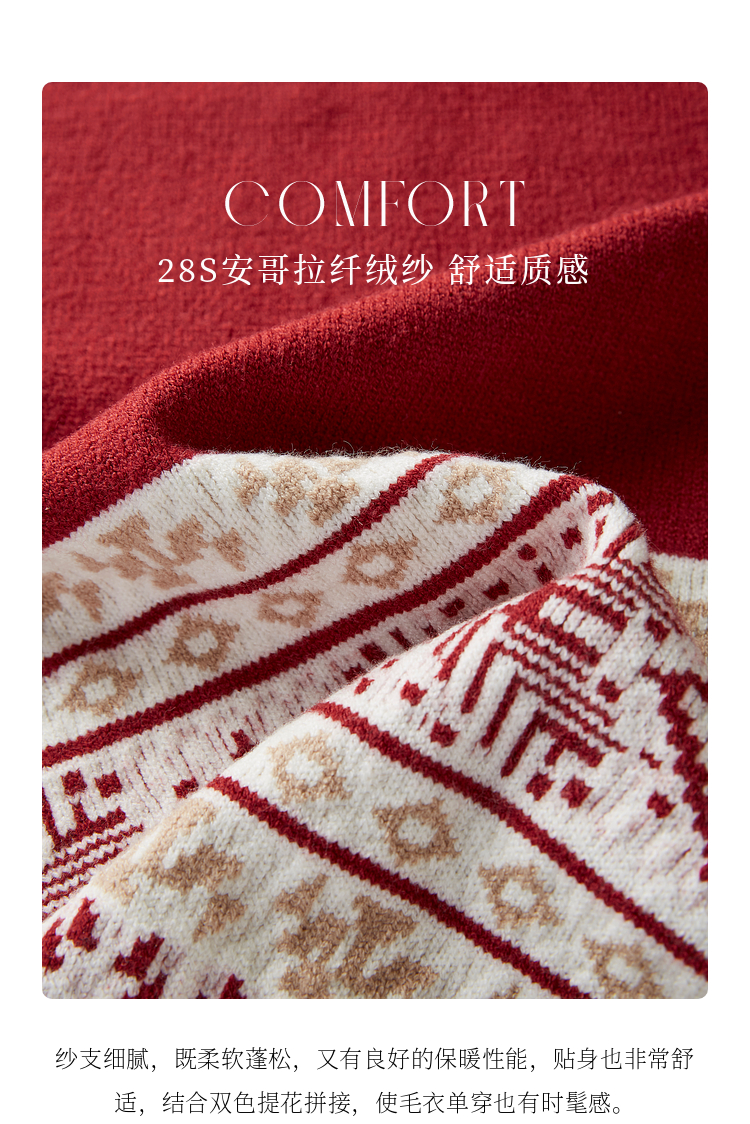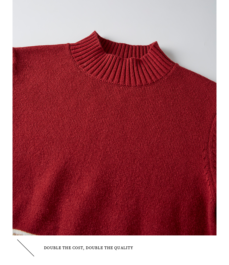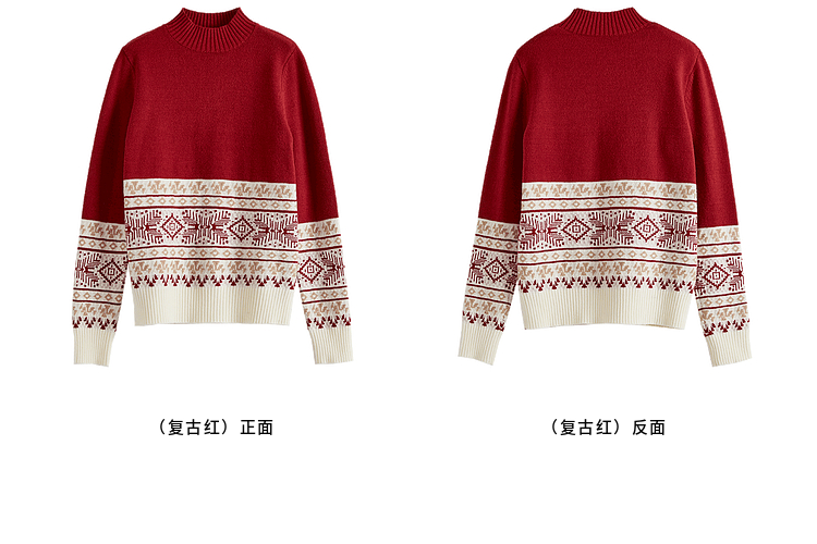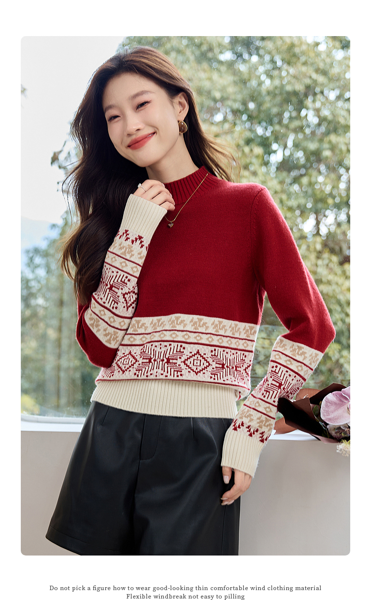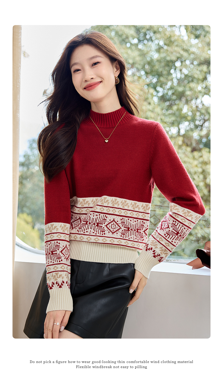 【年终特卖】熙世界氛围感撞色提花毛衣半高领红色打底针织衫2025年冬季新款