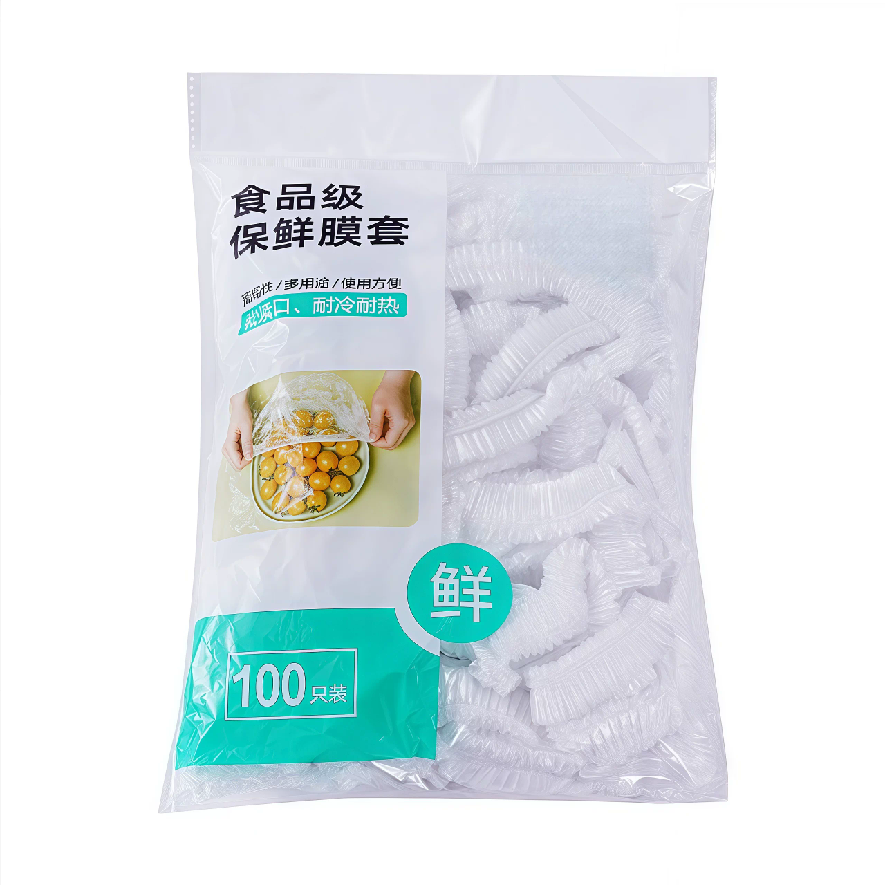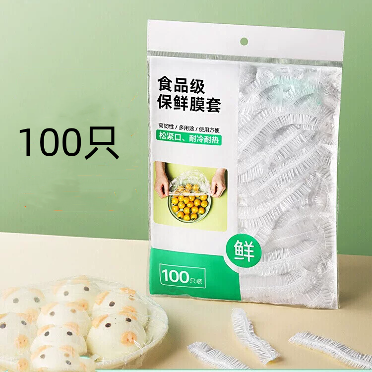 100只装 小号普通 食品级保鲜膜套 保鲜袋家用冰箱碗盖松紧口盘罩