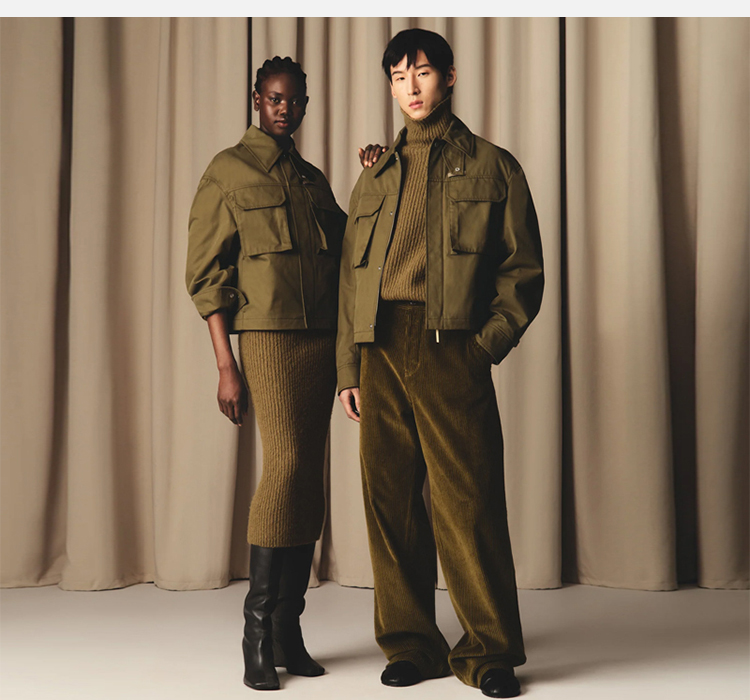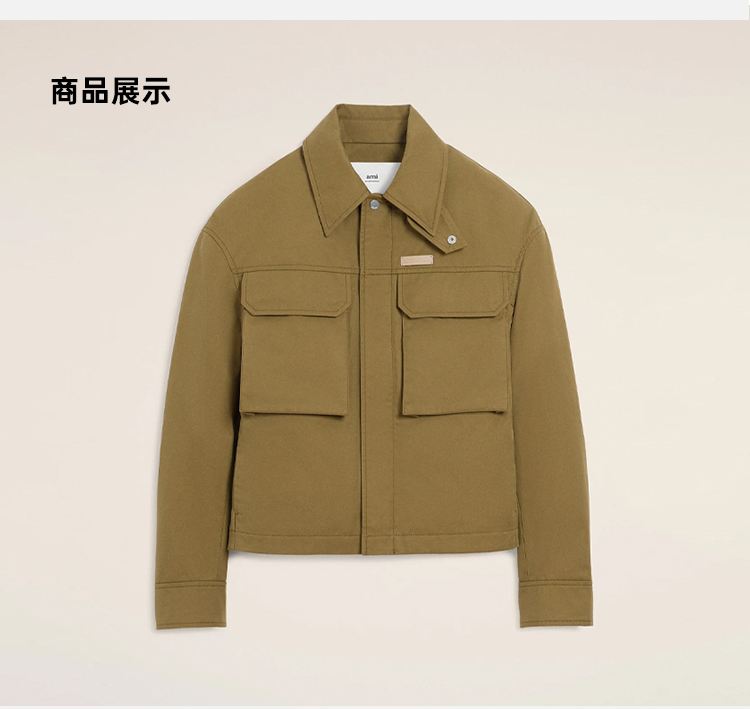 AMI 男女同款华达呢工装夹克外套 绿色 UJK846 CO0132 298
