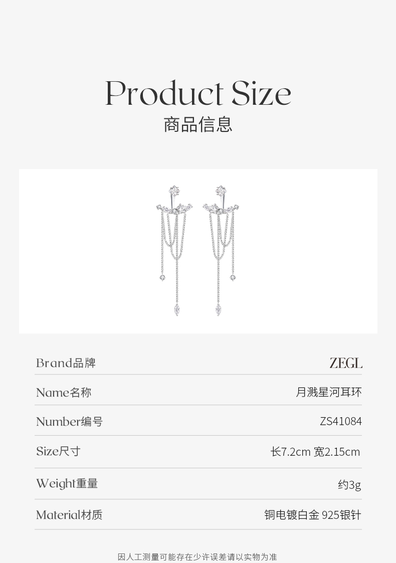 ZEGL设计师月溅星河系列流苏耳环女长款耳钉2023新款925银针耳饰