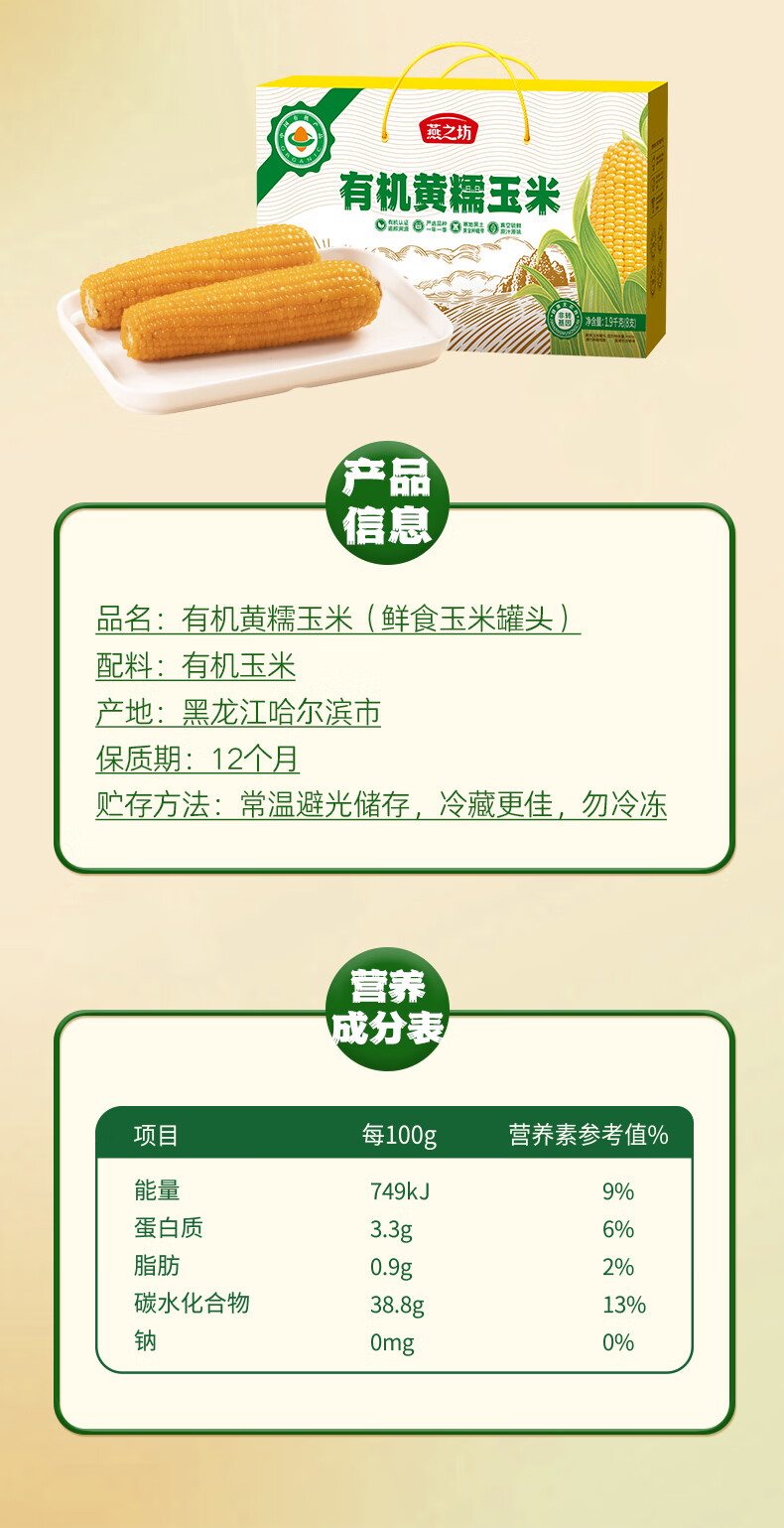 燕之坊有机黄糯玉米礼盒 1.9kg