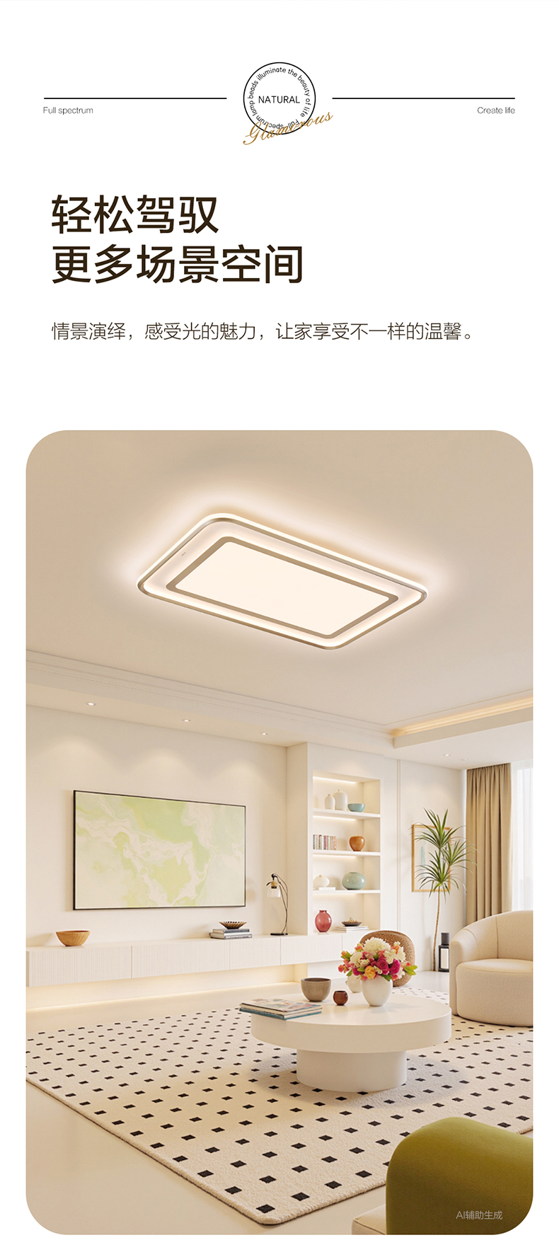 欧普(OPPLE)悦晴客厅奶油风圆形悦影卧室线面吸顶灯套餐