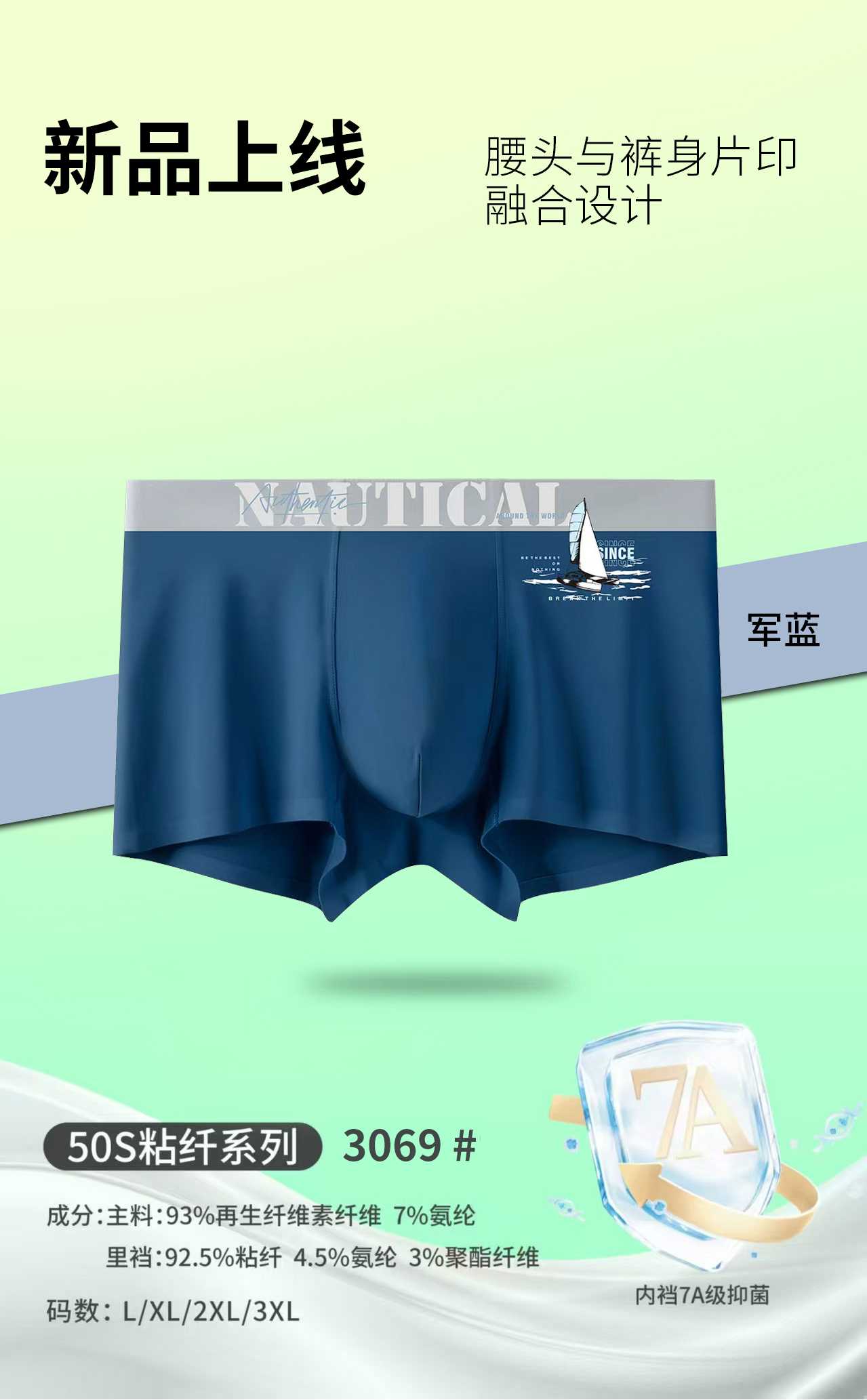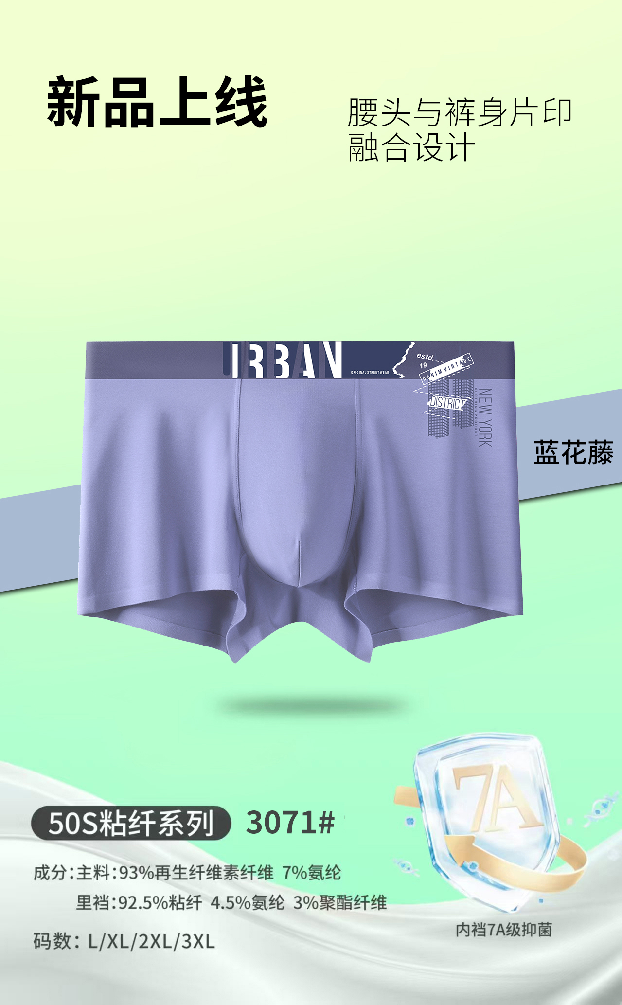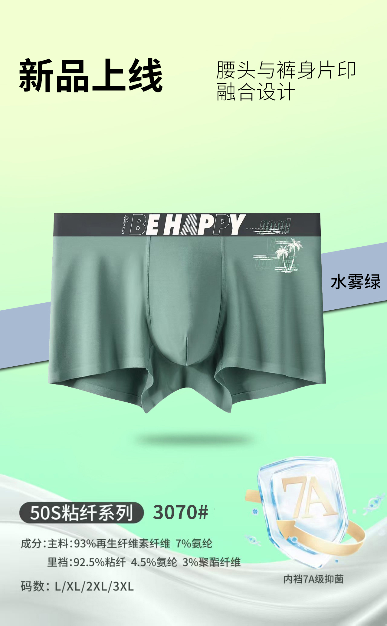 男士莫代尔印花无痕平角内裤时尚舒适透气两条装3068/3069/3070/3071