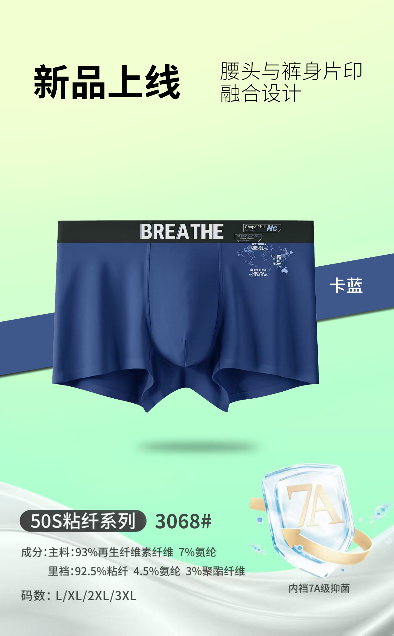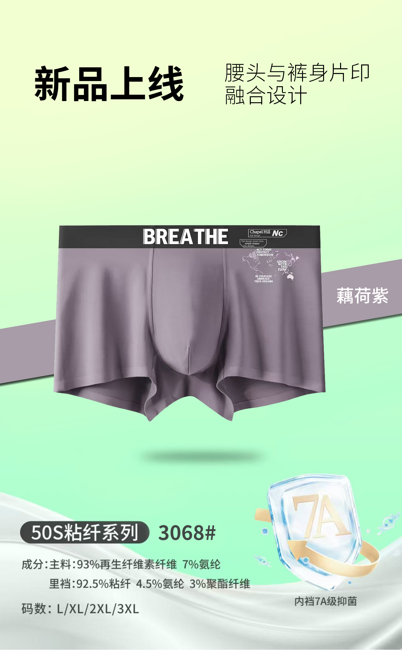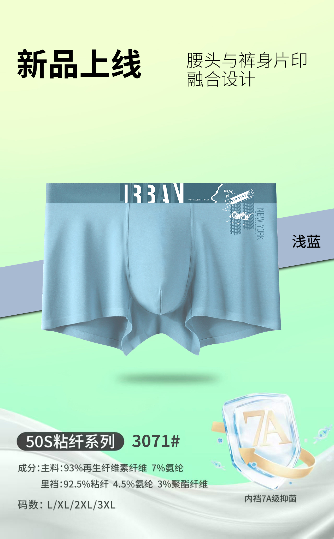 男士莫代尔印花无痕平角内裤时尚舒适透气两条装3068/3069/3070/3071