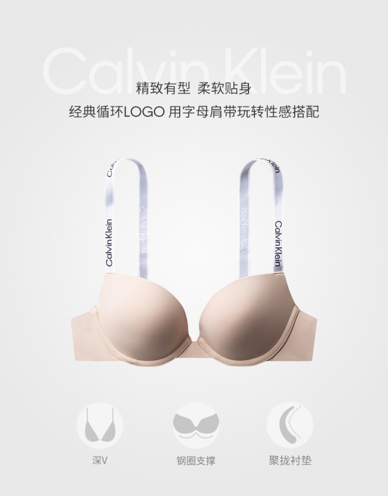 【海南专供价】CKU【焦点引力带】女士性感深V交叉美背聚拢厚垫文胸QF6866AD
