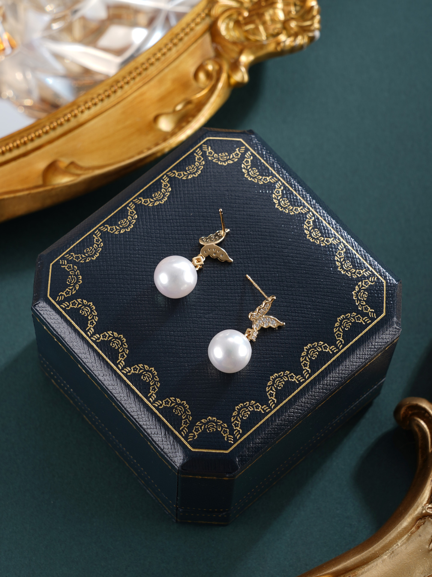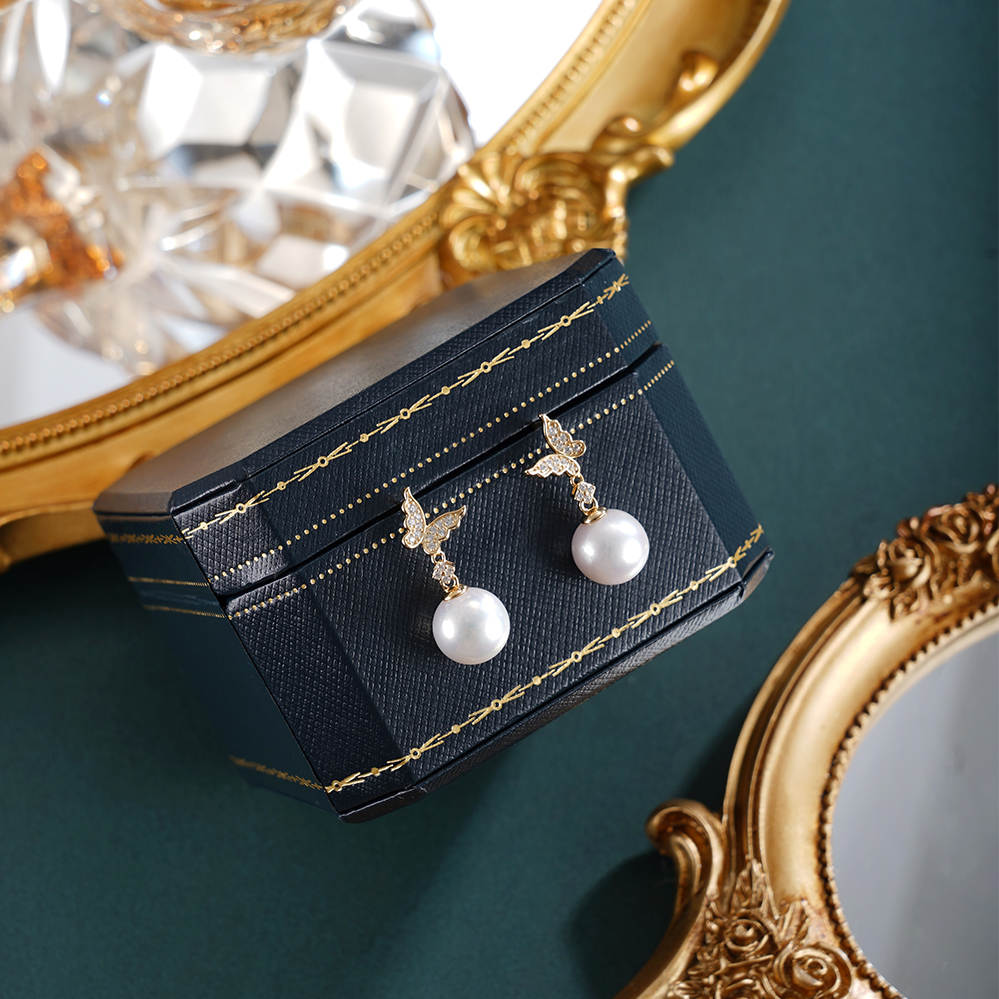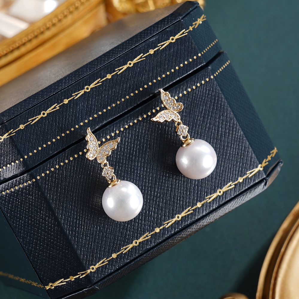 子佩集【彩蝶仙踪】银S925珍珠惜王妃耳钉【E0749】10mm珠镀金蝴蝶2601
