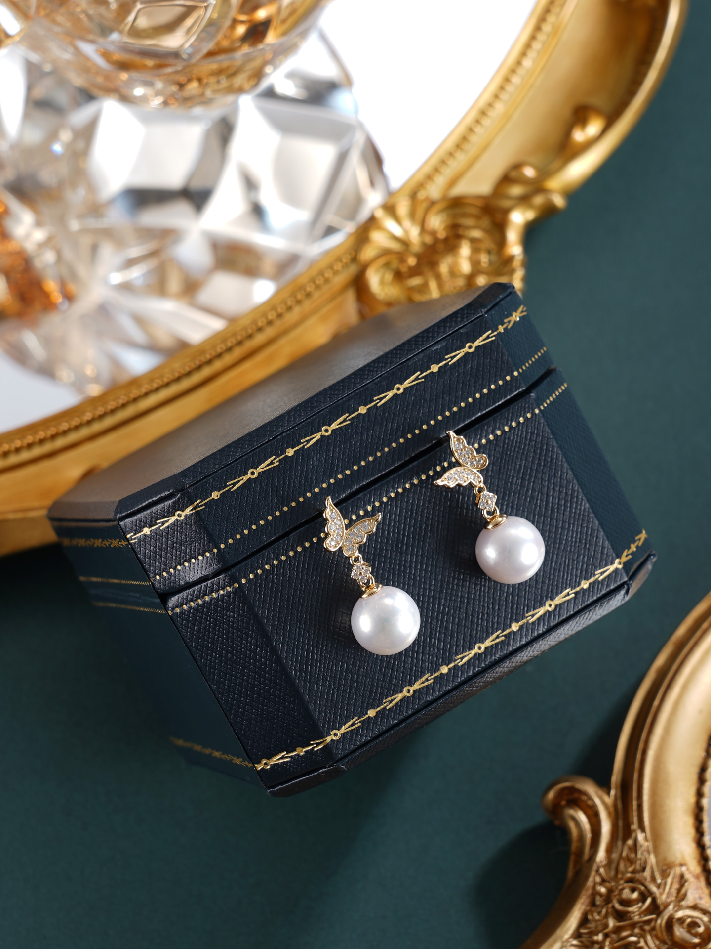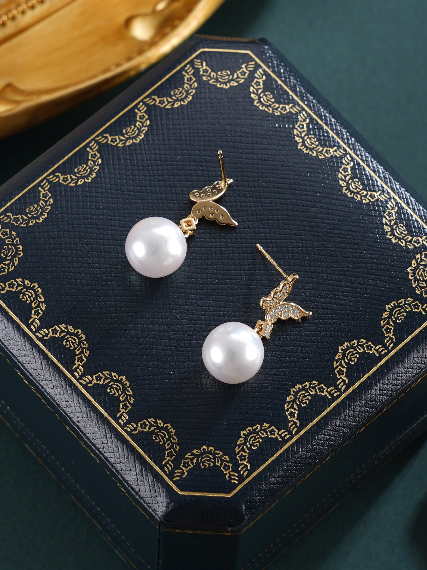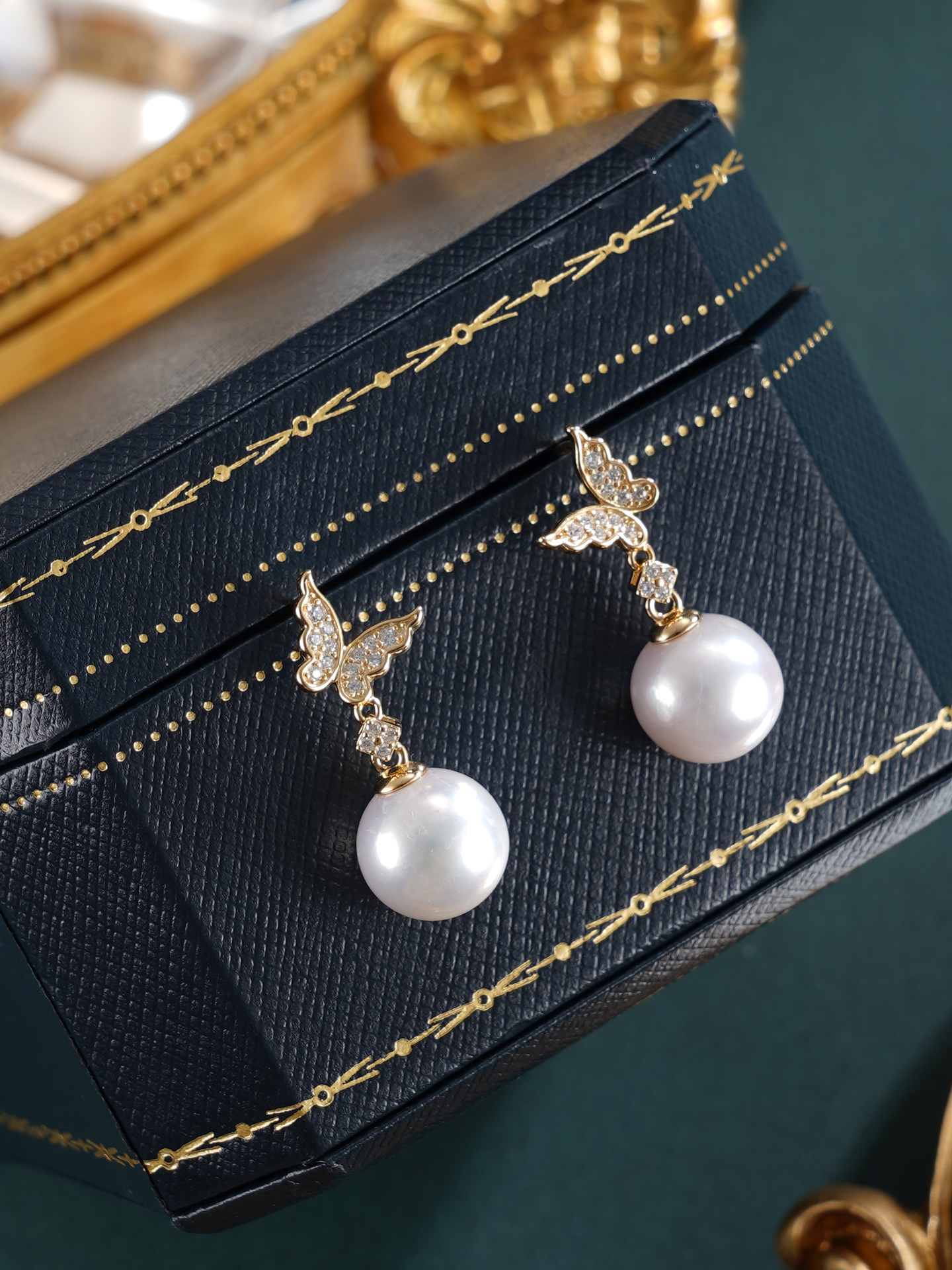 子佩集【彩蝶仙踪】银S925珍珠惜王妃耳钉【E0749】10mm珠镀金蝴蝶2601