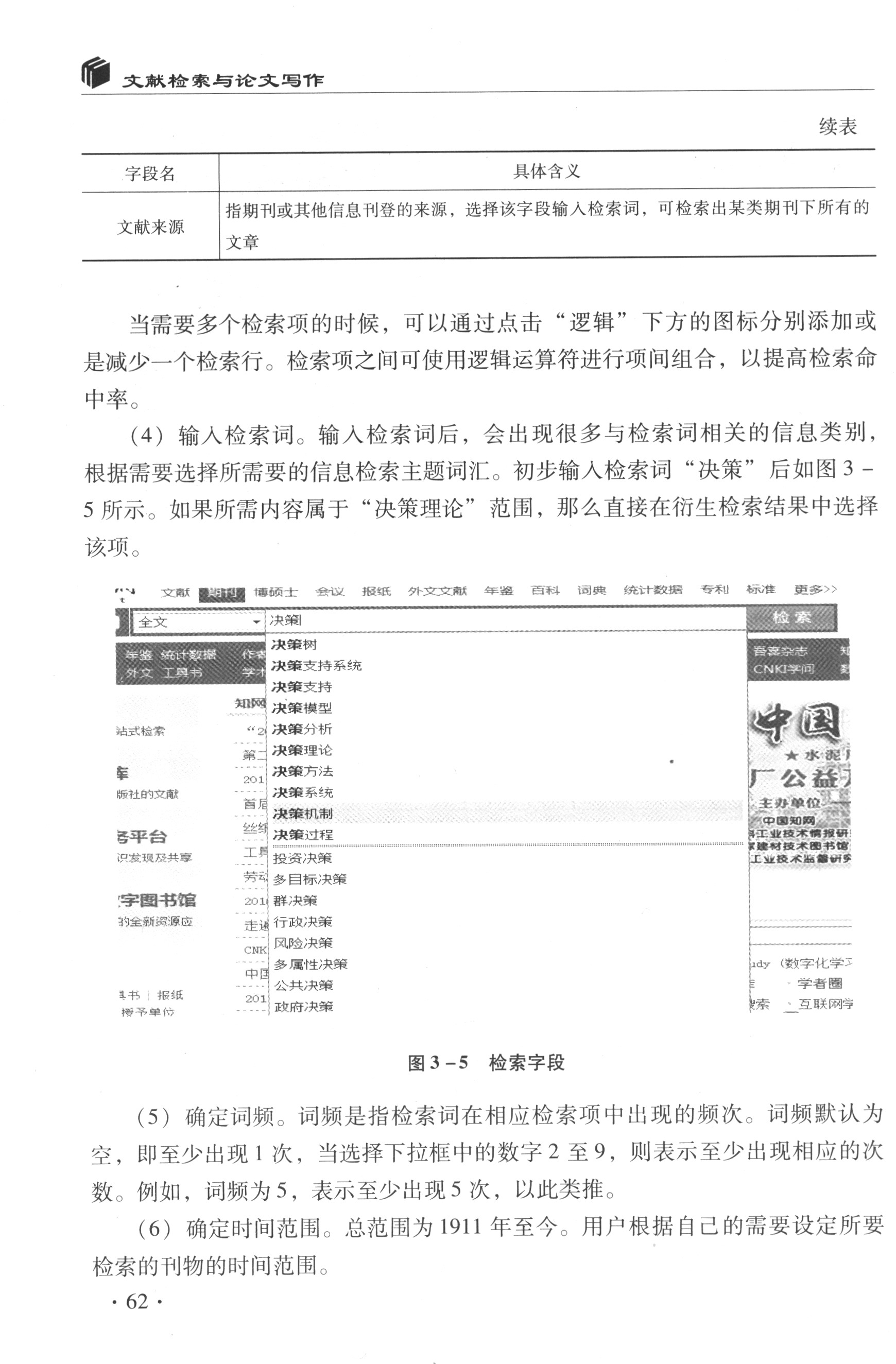 本书不同于纯理论教材,在不失严谨的前提下力求在编写上避免晦涩的说教,并尽量做到直观易懂,努力突出应用性。此外,本书引人大数据信息检索、数字图书馆、云图书馆、移动图书馆等当前文献检索领域的新内容。为了贯彻“与时俱进”这一原则,本书参考了国内外大量书籍及文献,在系统解释文献检索等概念的基础上,努力将同行们总结的以及我们在实践中总结的检索文献和写作论文的经验和体会融入其中。为了使读者自己掌握本书的内容,又考虑到这门课程的应用性和实践性,本书许多章节举出了具体的实例,力求做到整体统一、目标明确、重点突出、应用导向、内容与方法相辅相成。