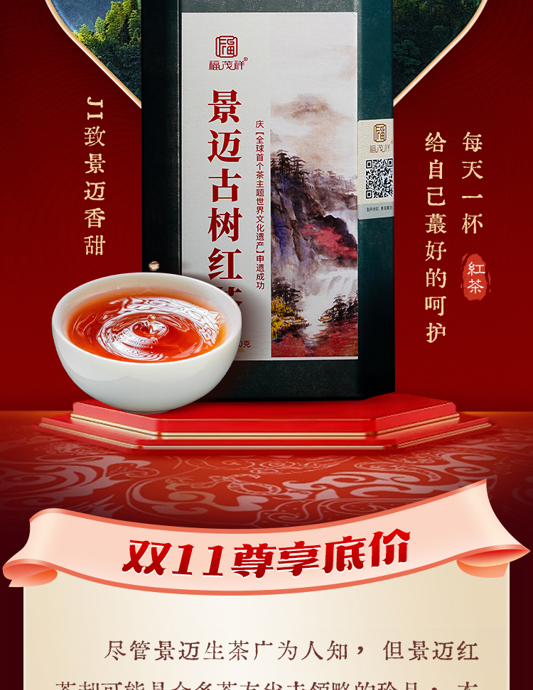 【景迈古树红茶】来自首座申遗茶山的古树红茶 可长期储存的红茶 2023年云南普洱茶区景迈山300古树红茶罐装200g