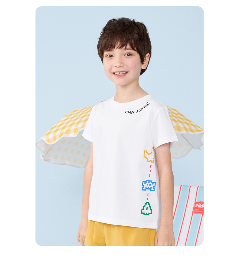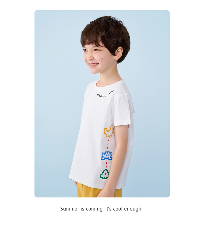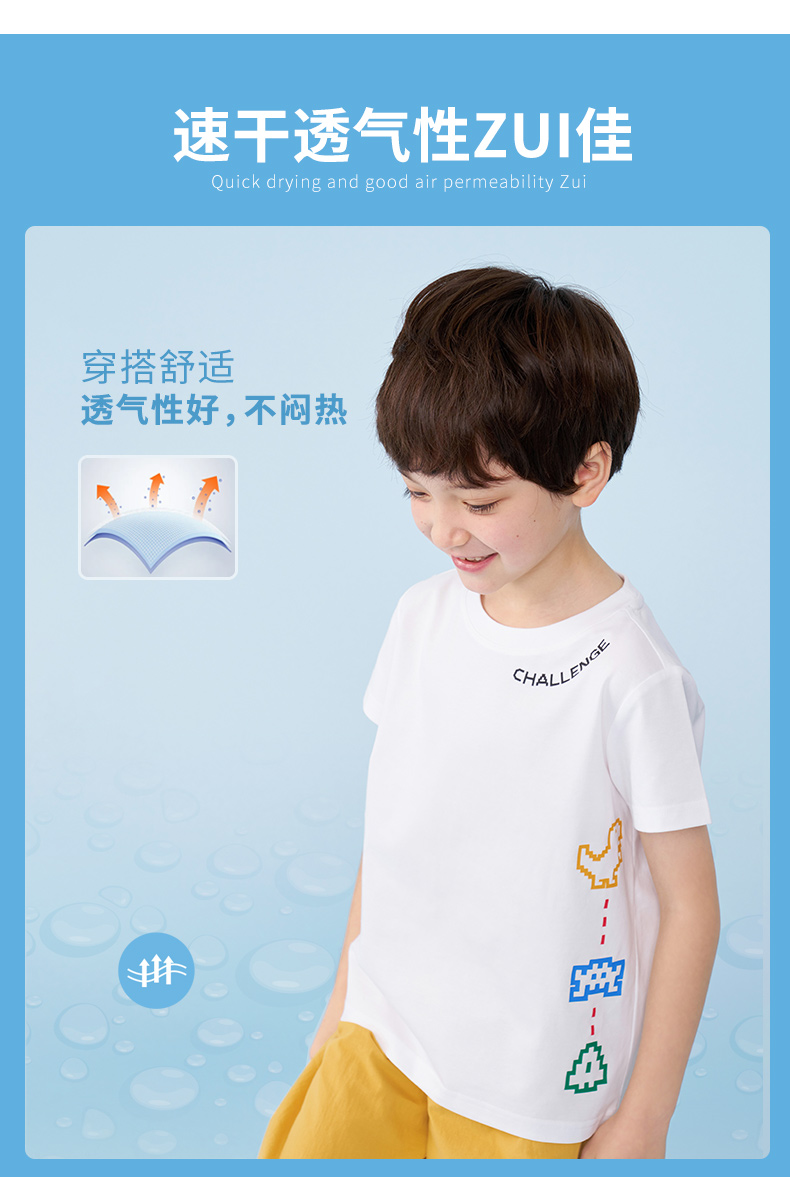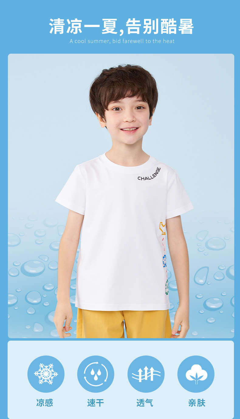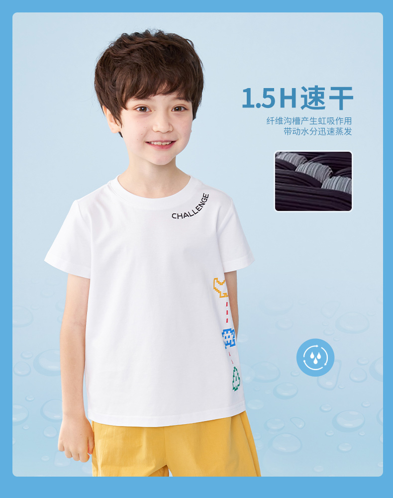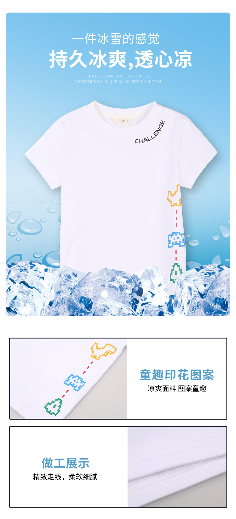 mettekids男童短袖t恤夏季儿童凉感透气童装中大童休闲宽松上衣