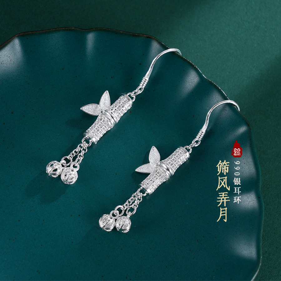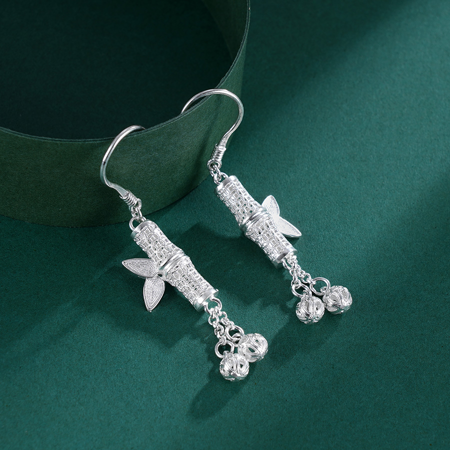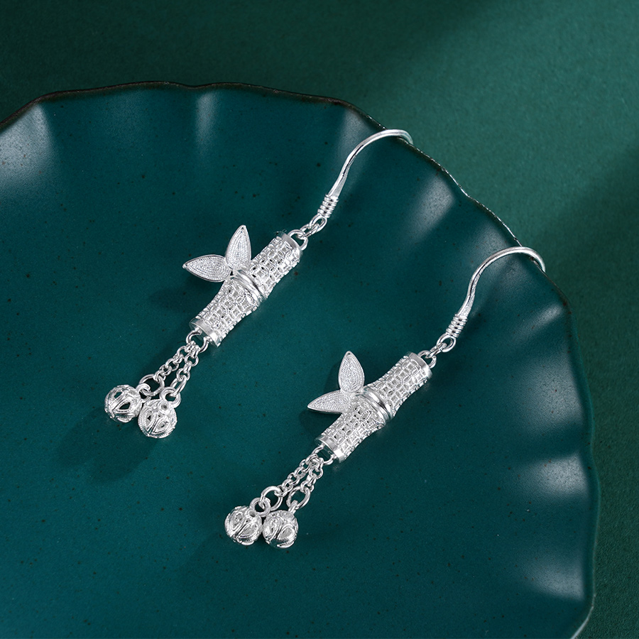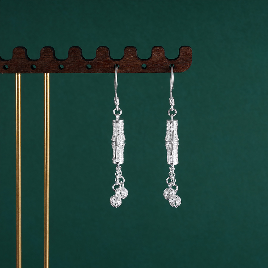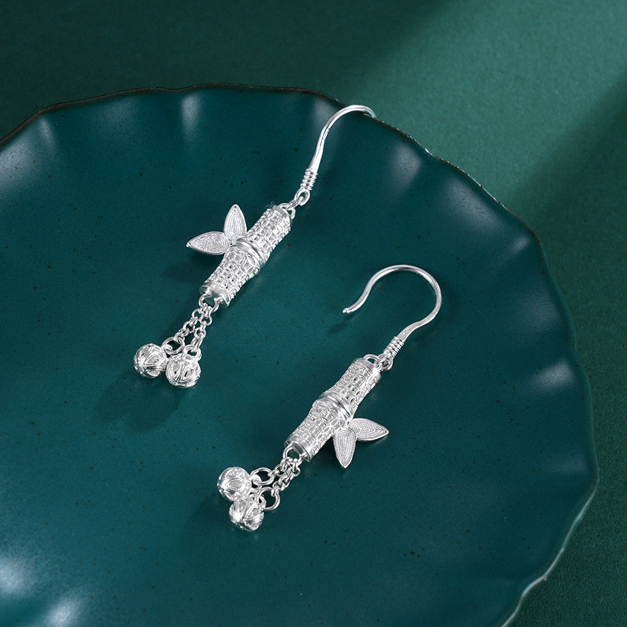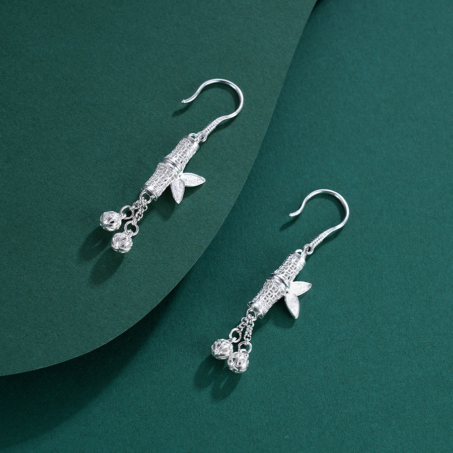 【寓意】:耳饰以“竹节”为灵感,采用银花丝工艺打造。独特的流苏设计,展现清雅脱俗的韵味。寓意着节节高升、美丽相随。