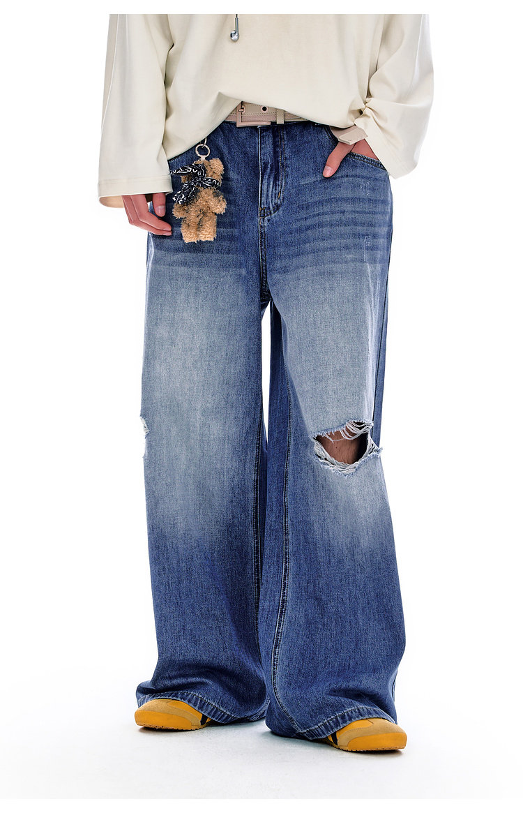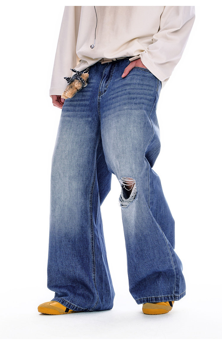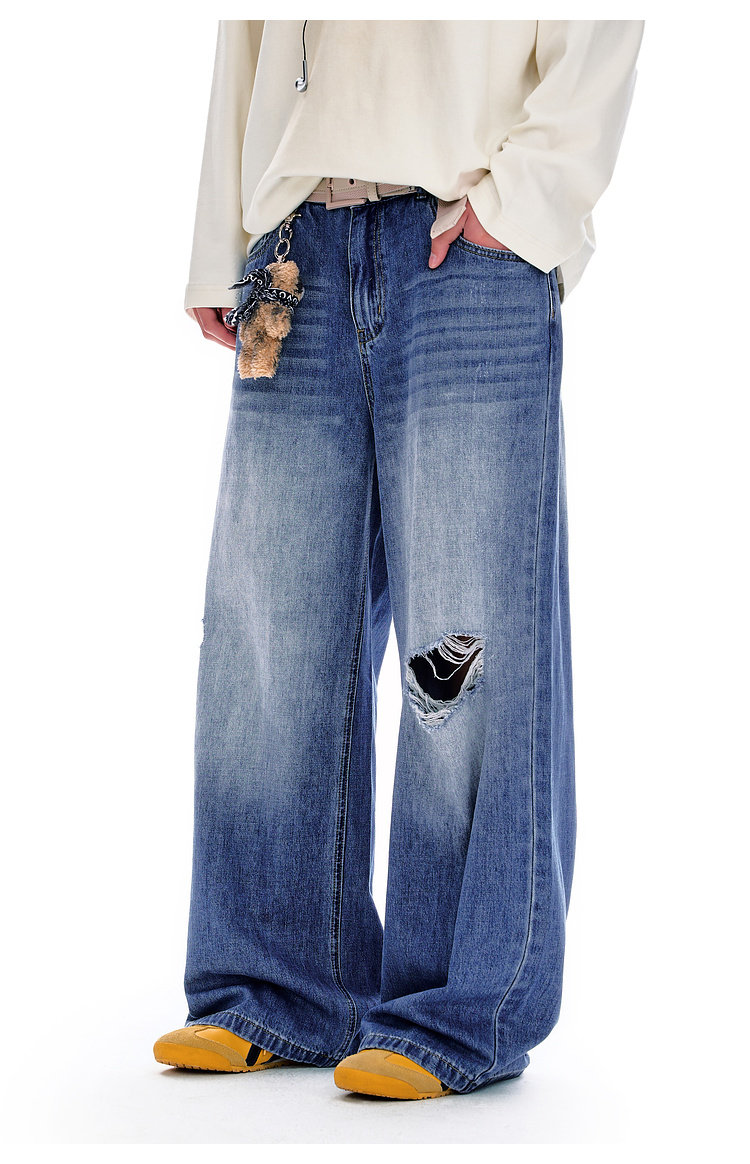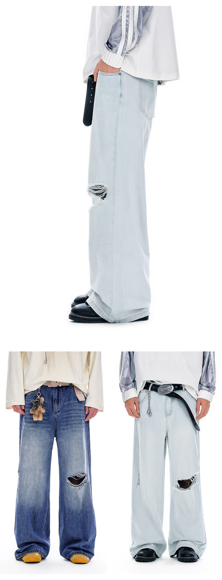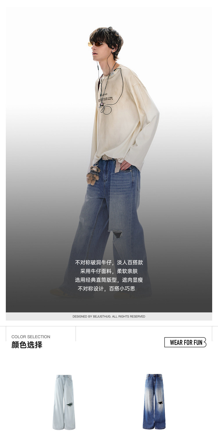 BJHG不计后果直筒牛仔裤男款2026新款春美式高街破洞潮牌长裤子女