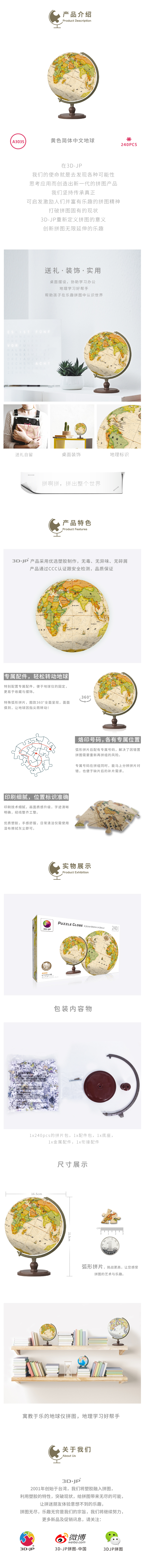 【折扣商品 不退不换】6寸240片 地球仪拼图 塑料拼图 A3035 黄色简体中文