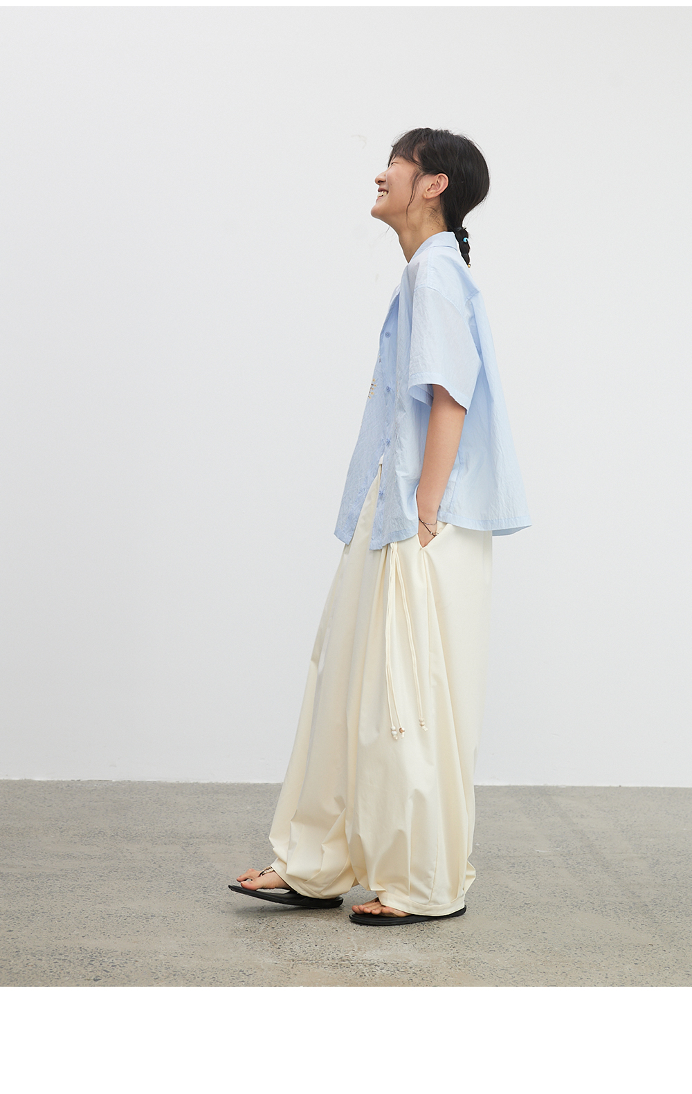 步履不停/4B43111C/速干阔腿抗皱灯笼裤山本长裤