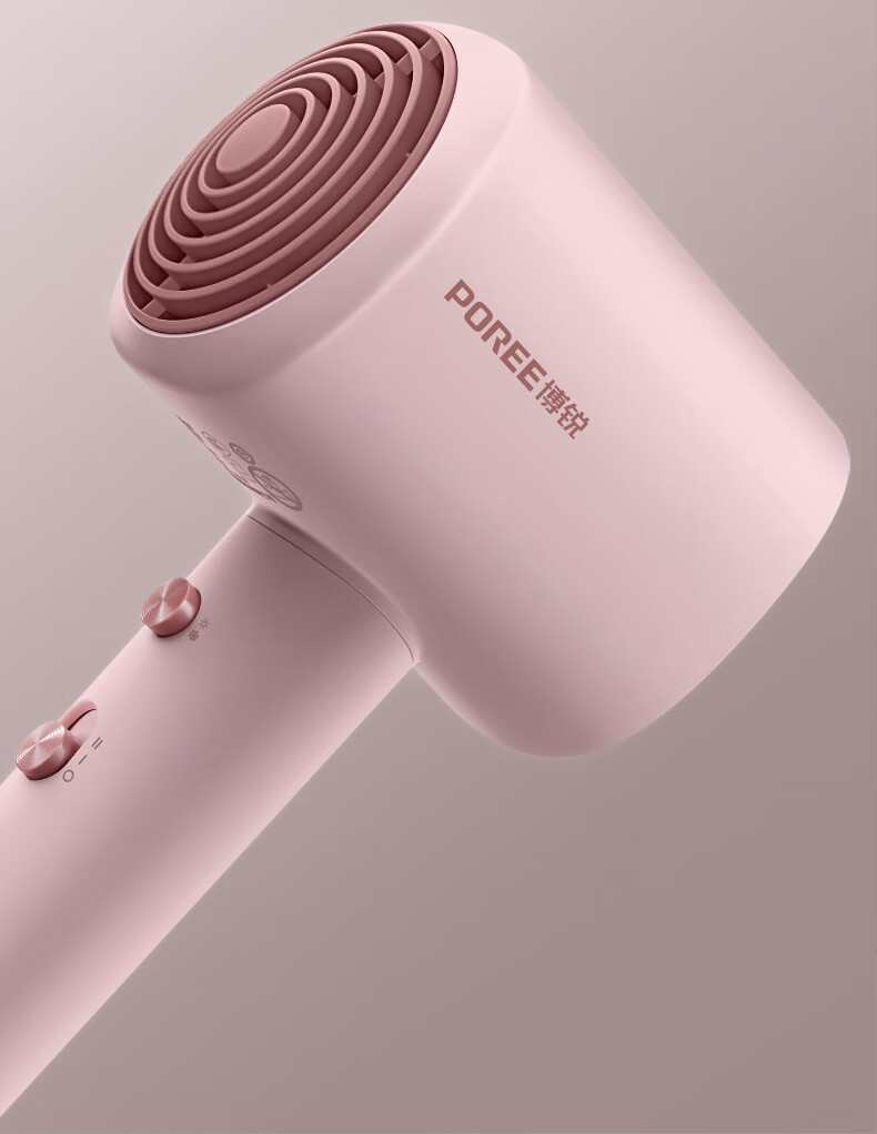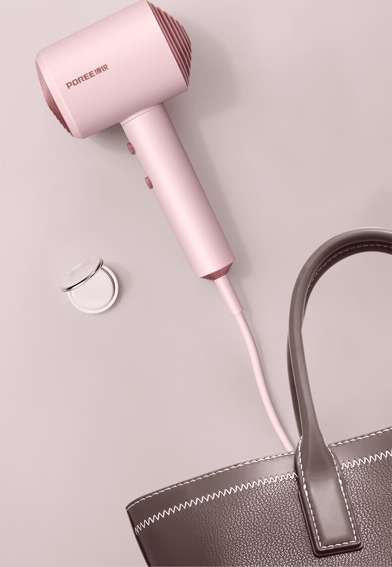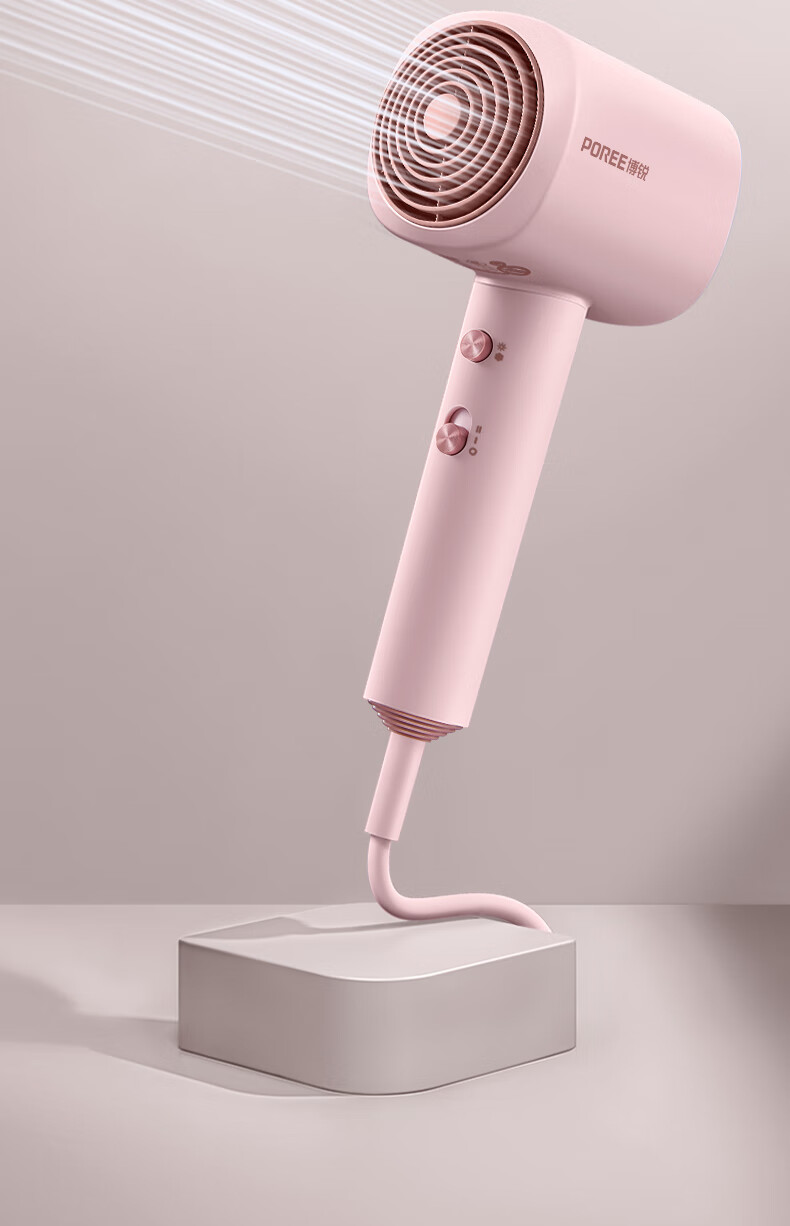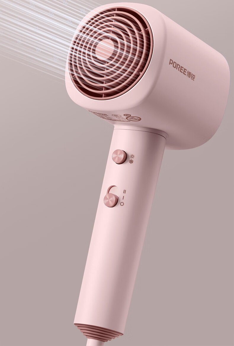 博锐 吹风机家用大风力热量均衡不伤发低噪音速干便携电吹风大功率吹风筒护发小方塔 少女粉PH1630