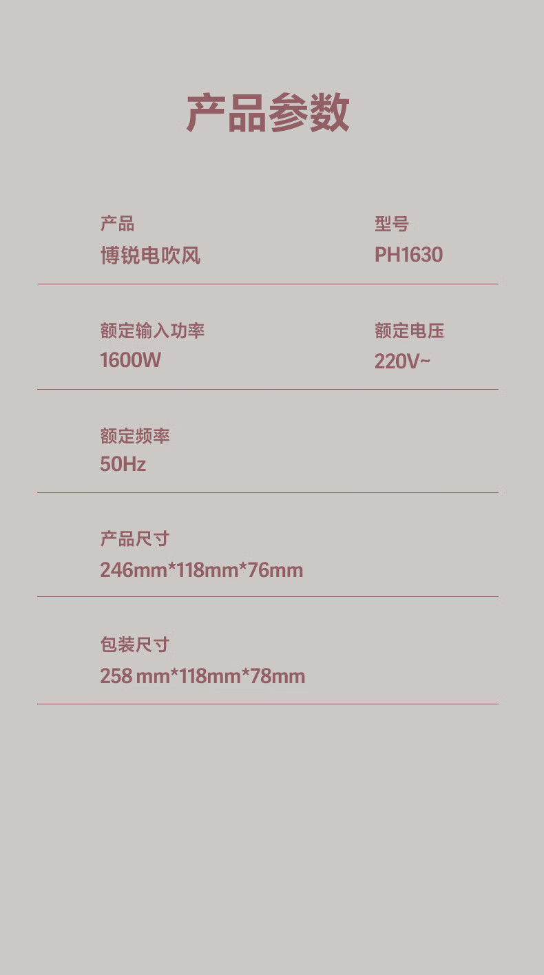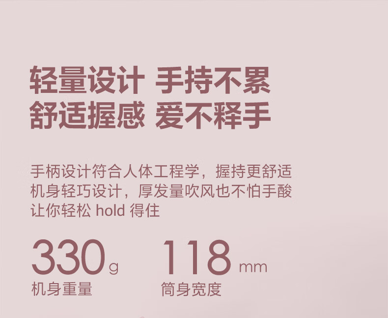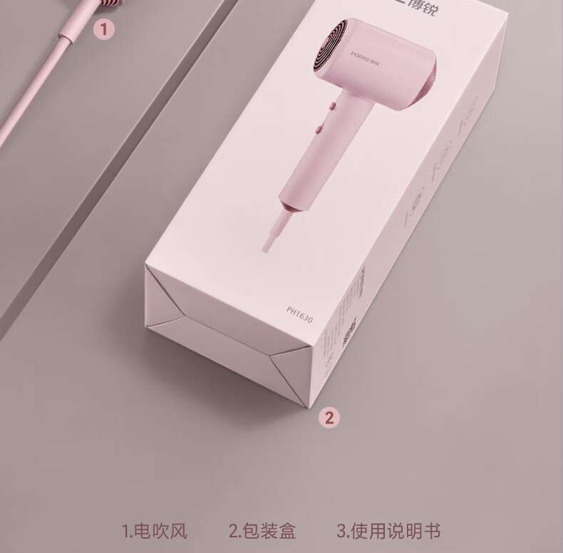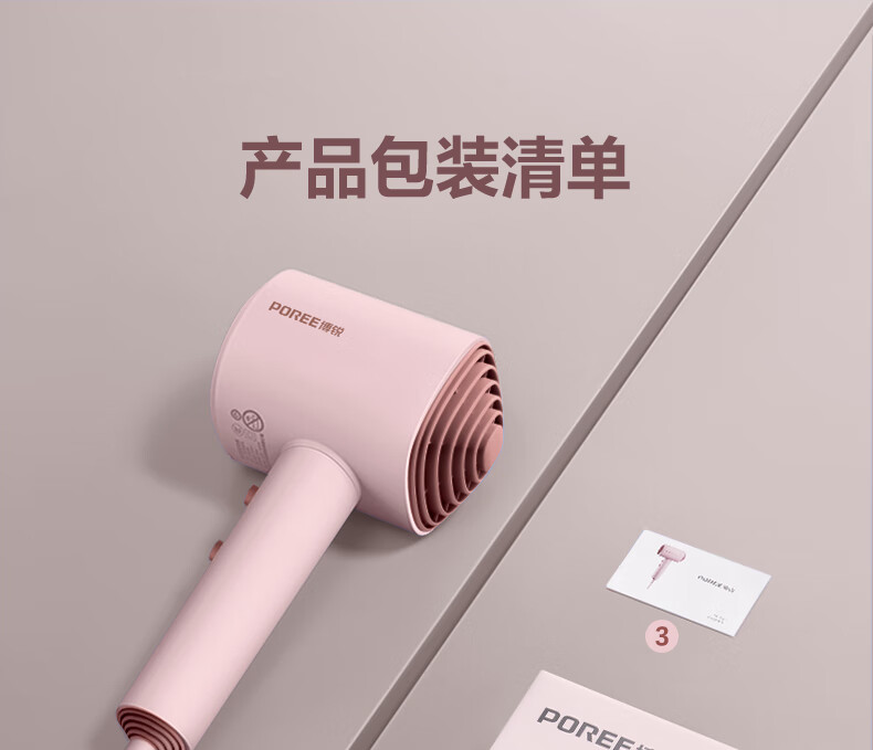 博锐 吹风机家用大风力热量均衡不伤发低噪音速干便携电吹风大功率吹风筒护发小方塔 少女粉PH1630