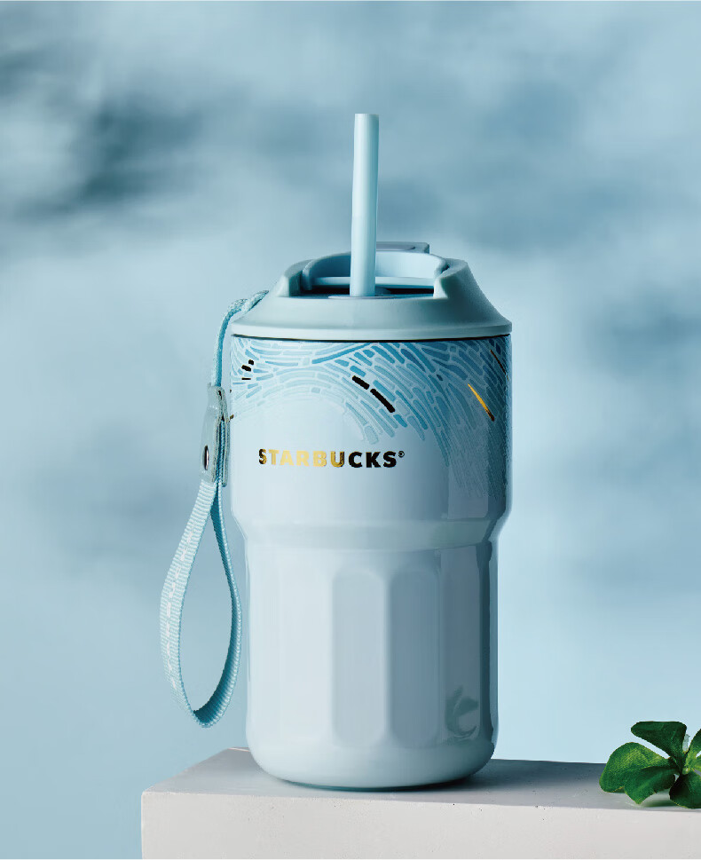 星巴克(Starbucks)微蓝韵律款双饮口咖啡杯445ml保温杯
