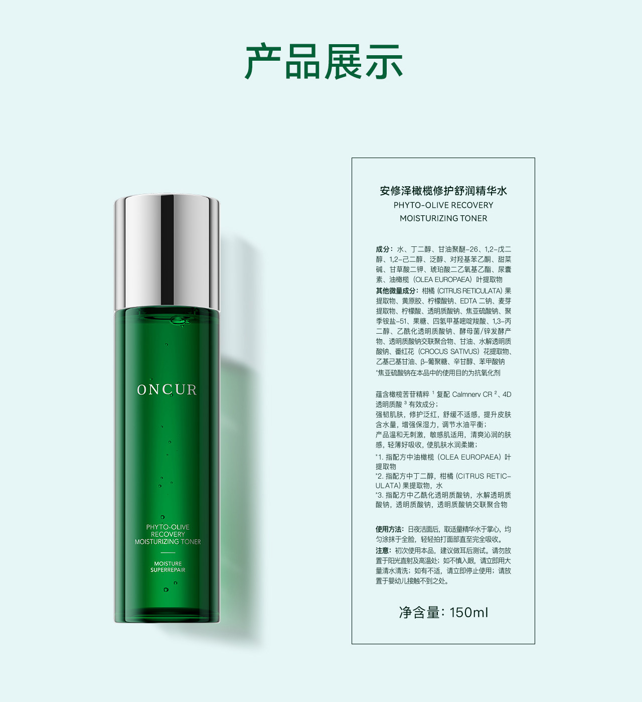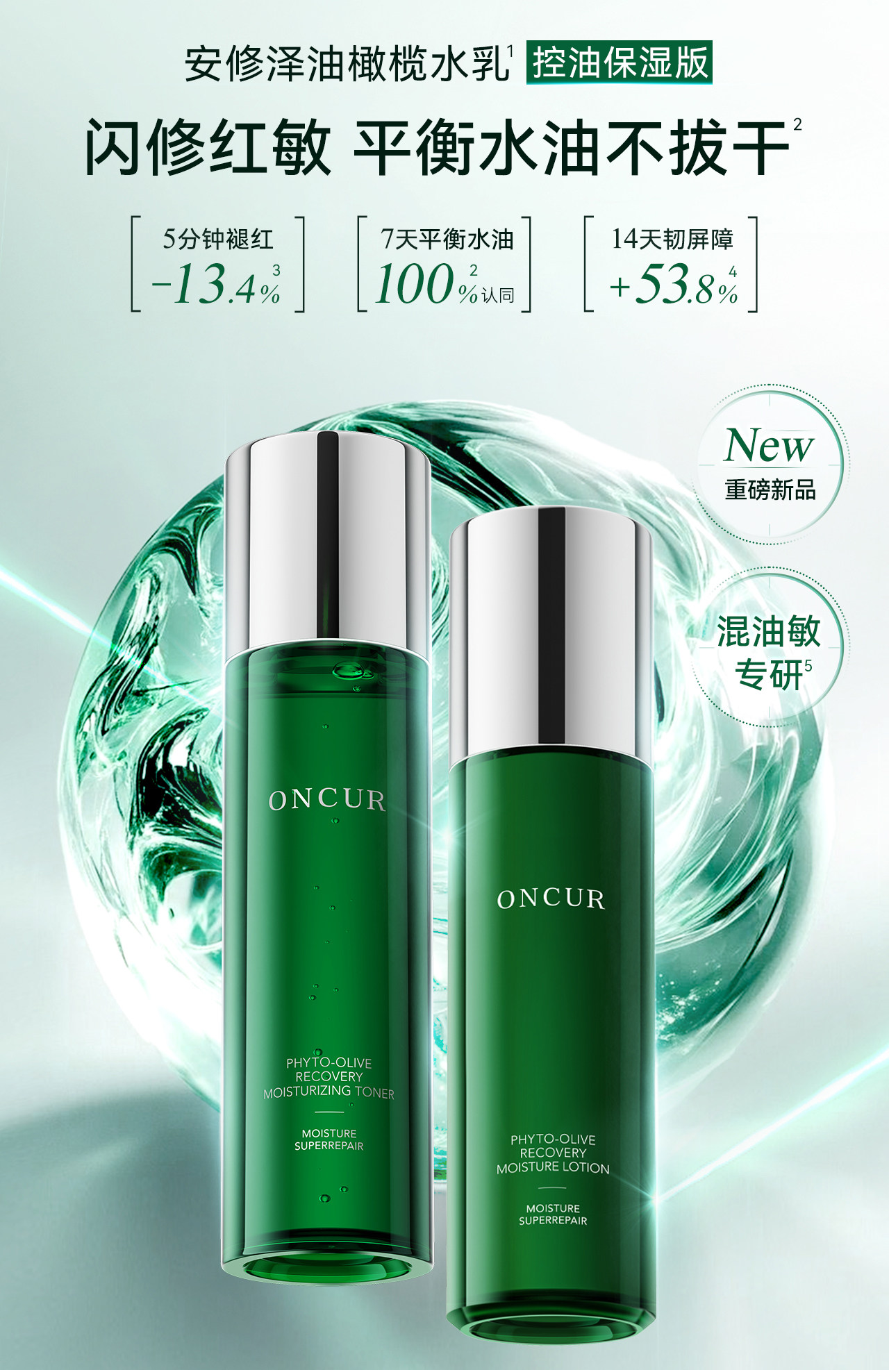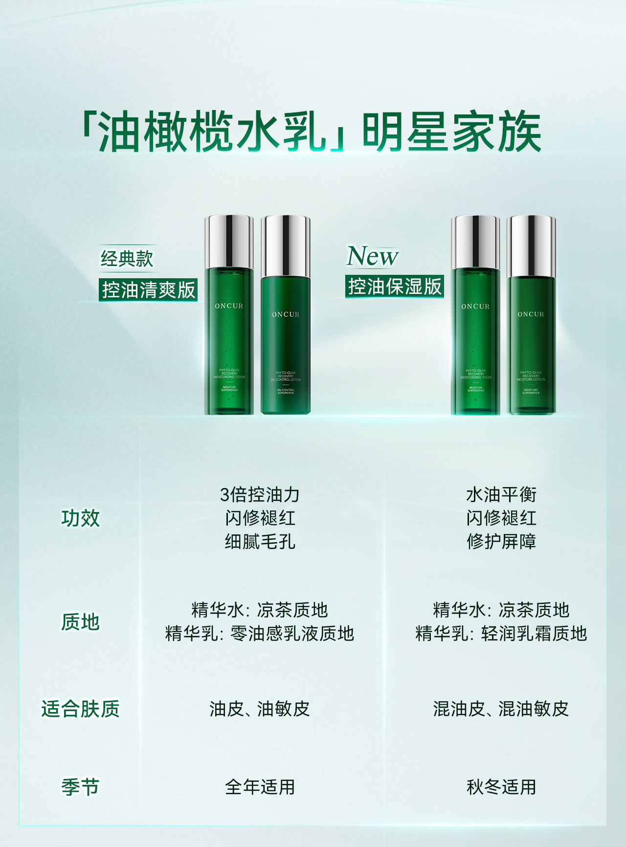 ONCUR安修泽油橄榄水乳套装 敏感肌护肤品控油保湿修护