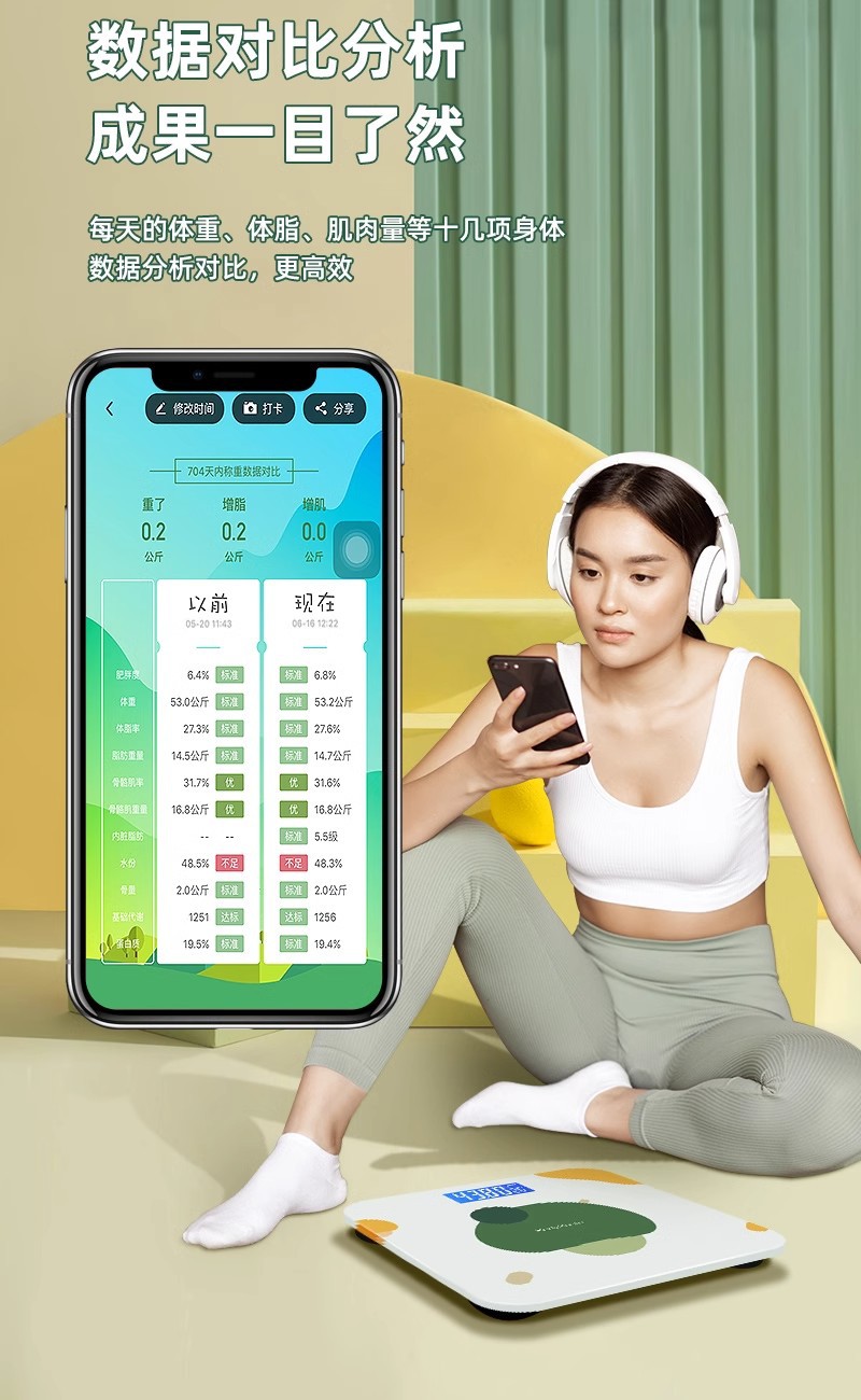 「智能APP互联!79项数据监测」可连手机体脂秤 测脂肪电子体重秤称体重居家日用智能充电款体脂秤
