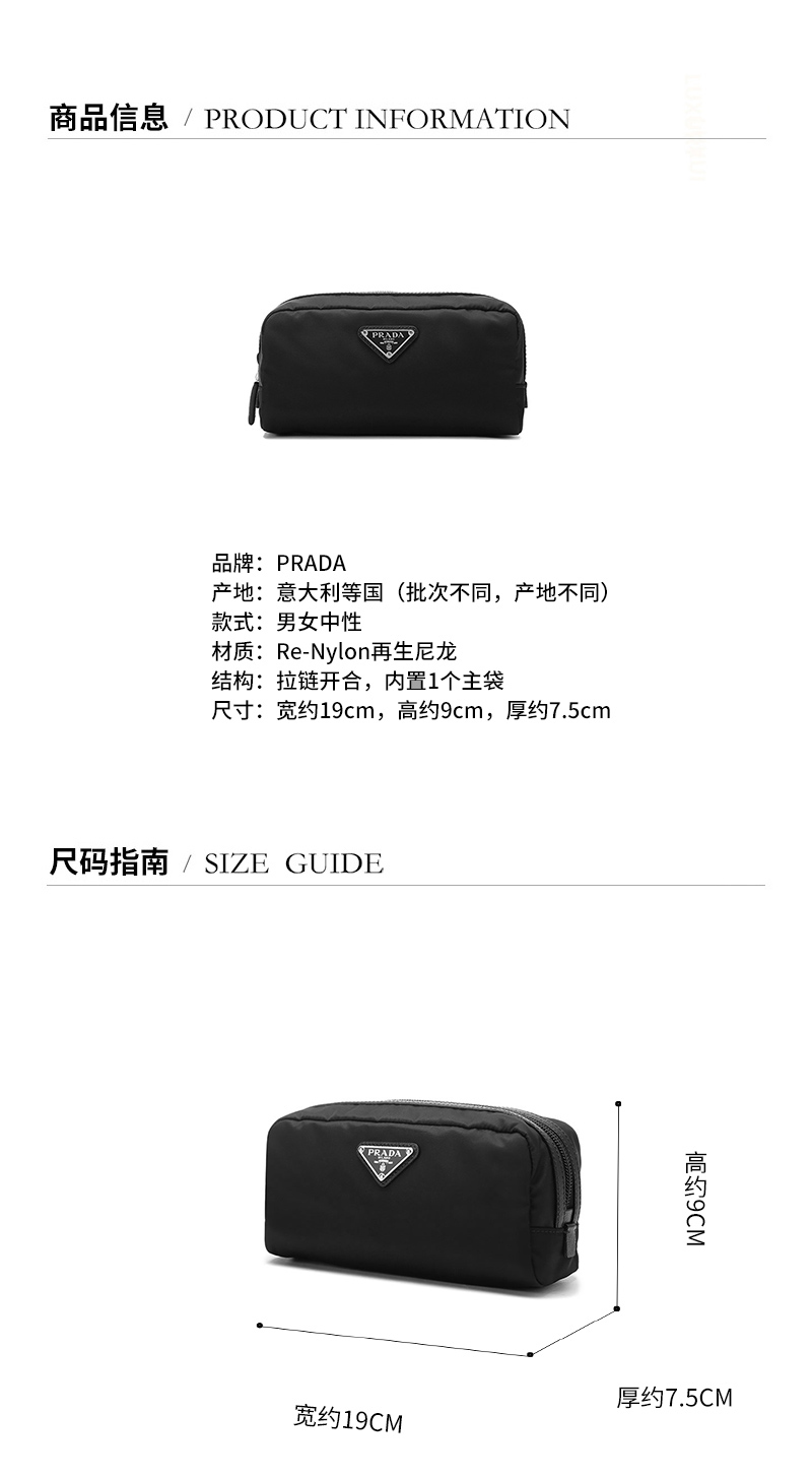 PRADA/普拉达 【22春夏新款】 男女中性Re-Nylon再生尼龙手拿包洗漱包化妆包 2NA045 2DMH