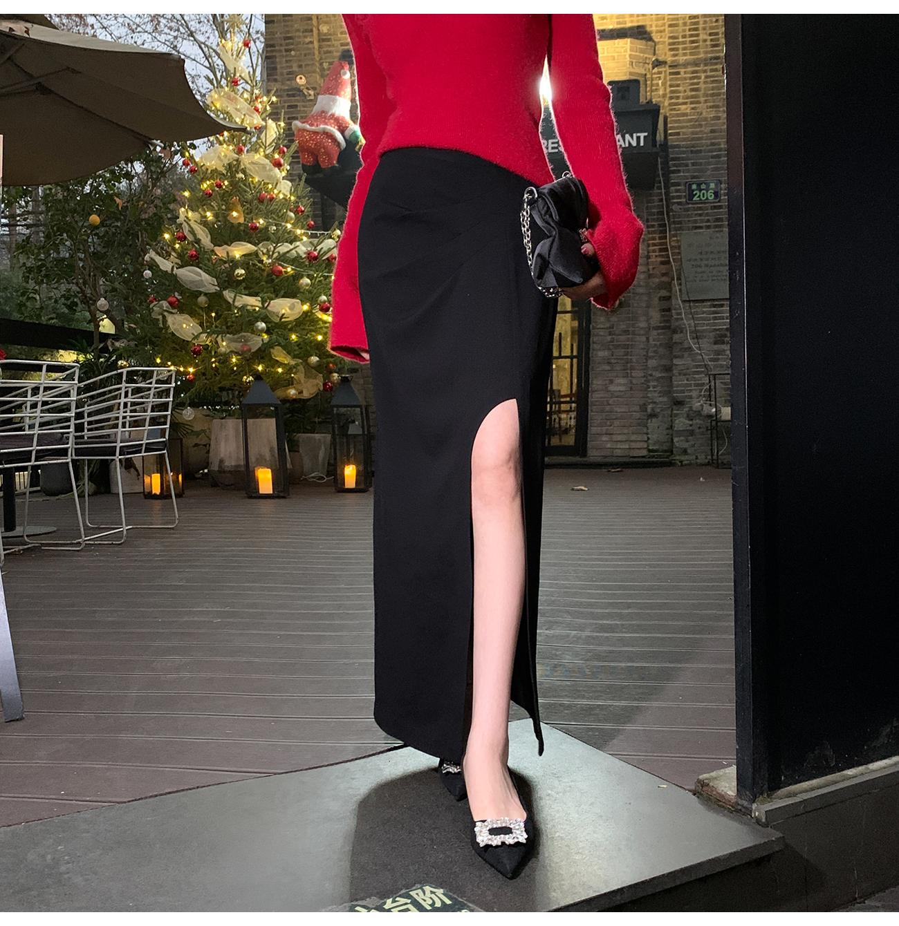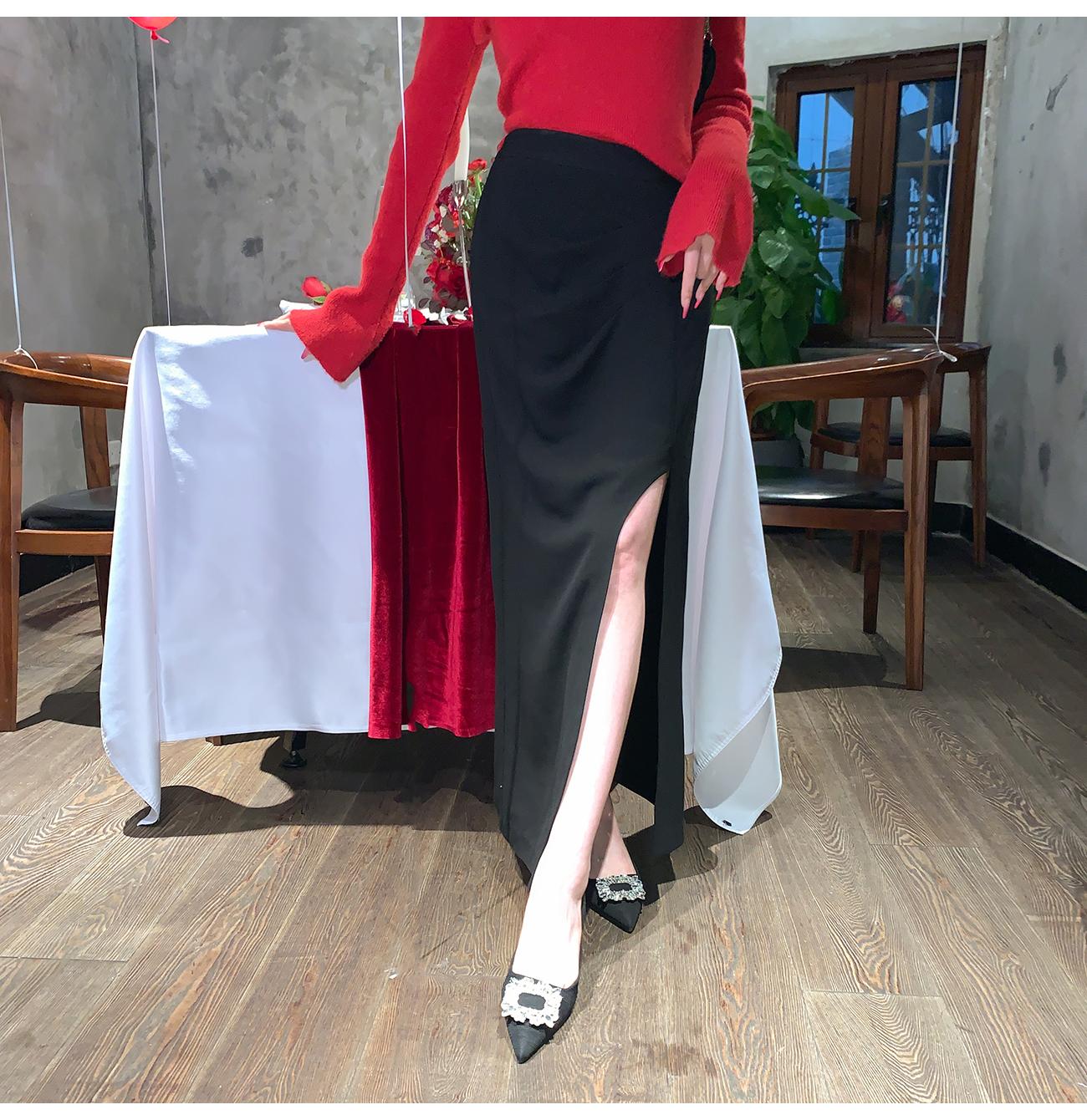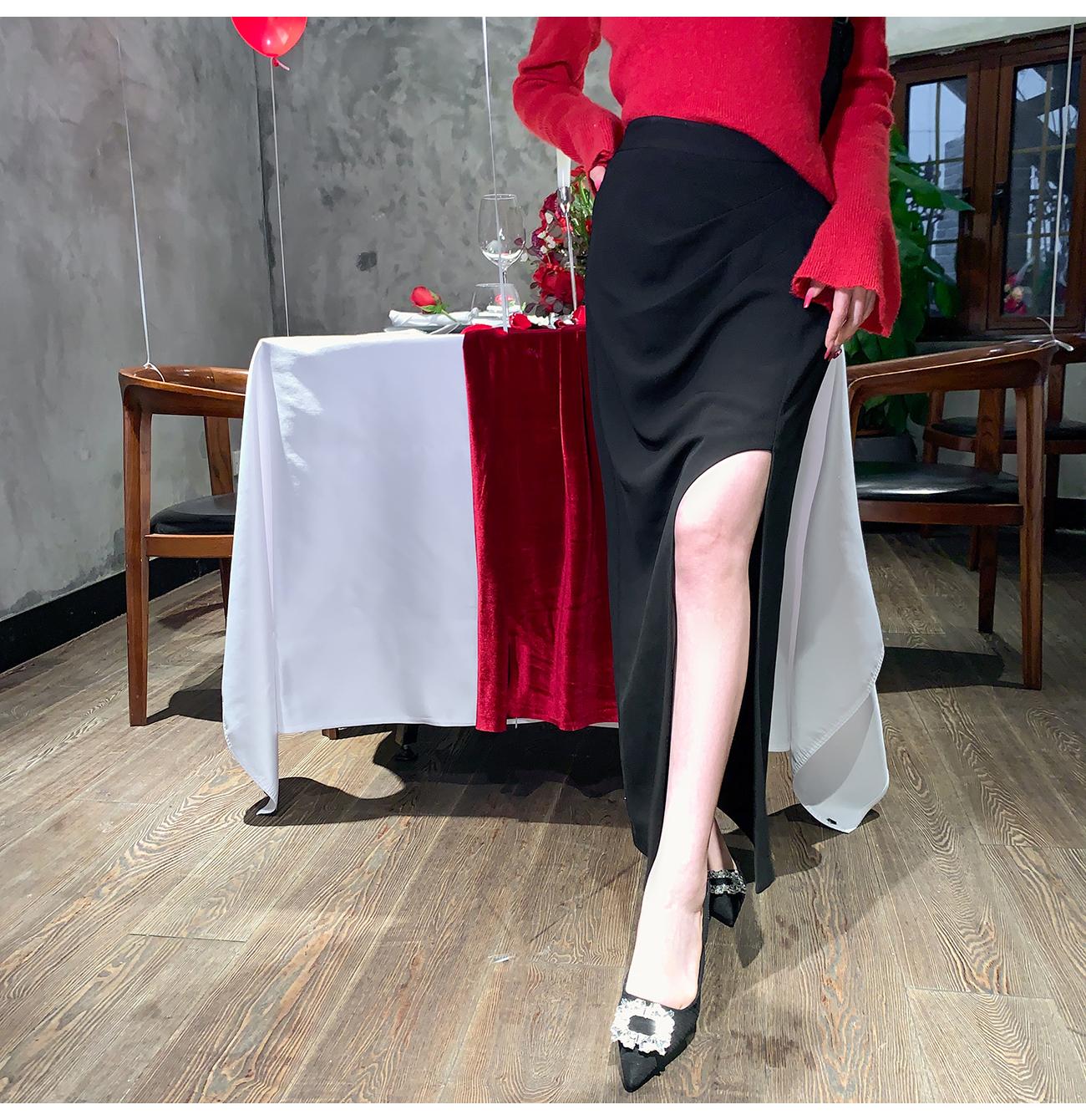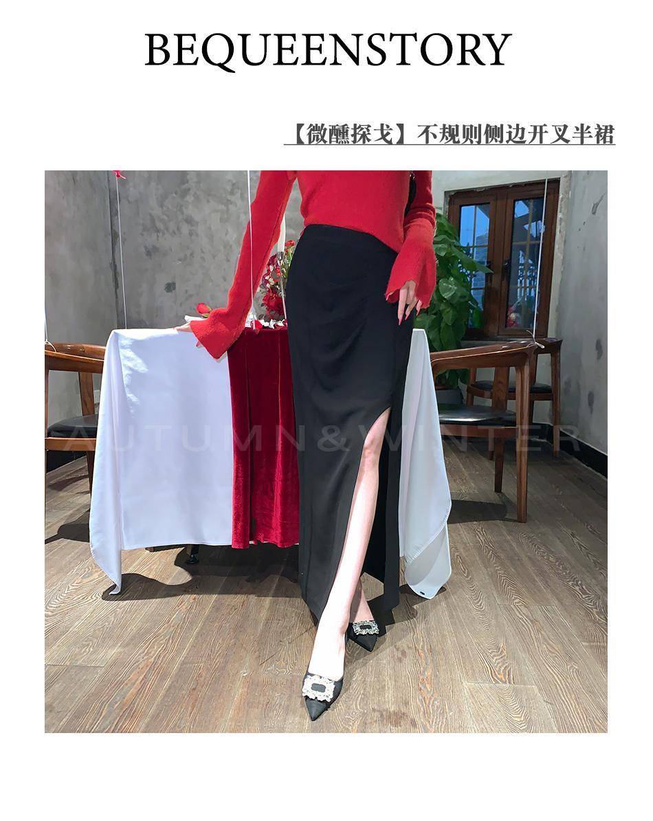 余潇潇【微醺探戈】灵动优美捏褶设计性感侧开衩醋酸H型气质半身裙