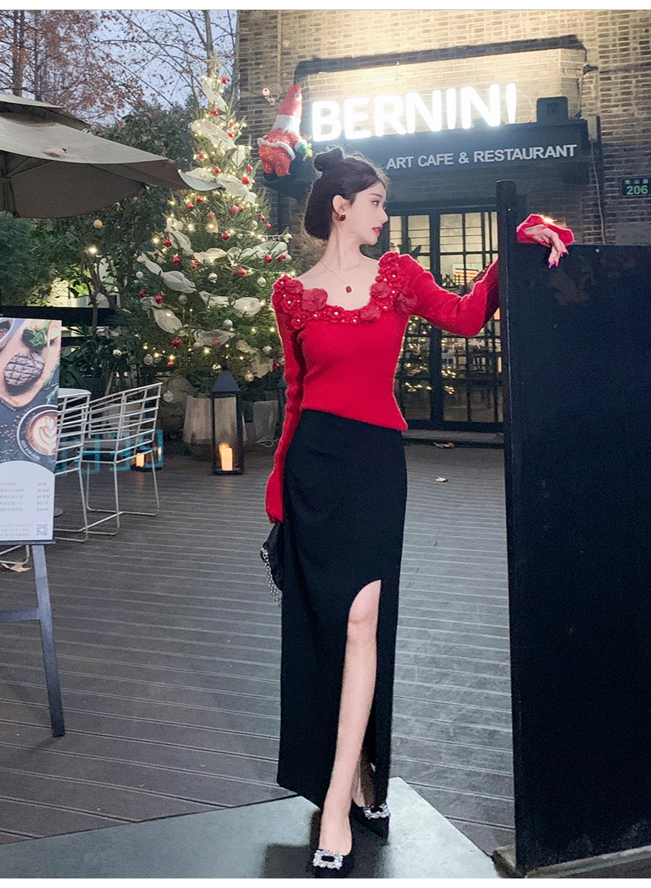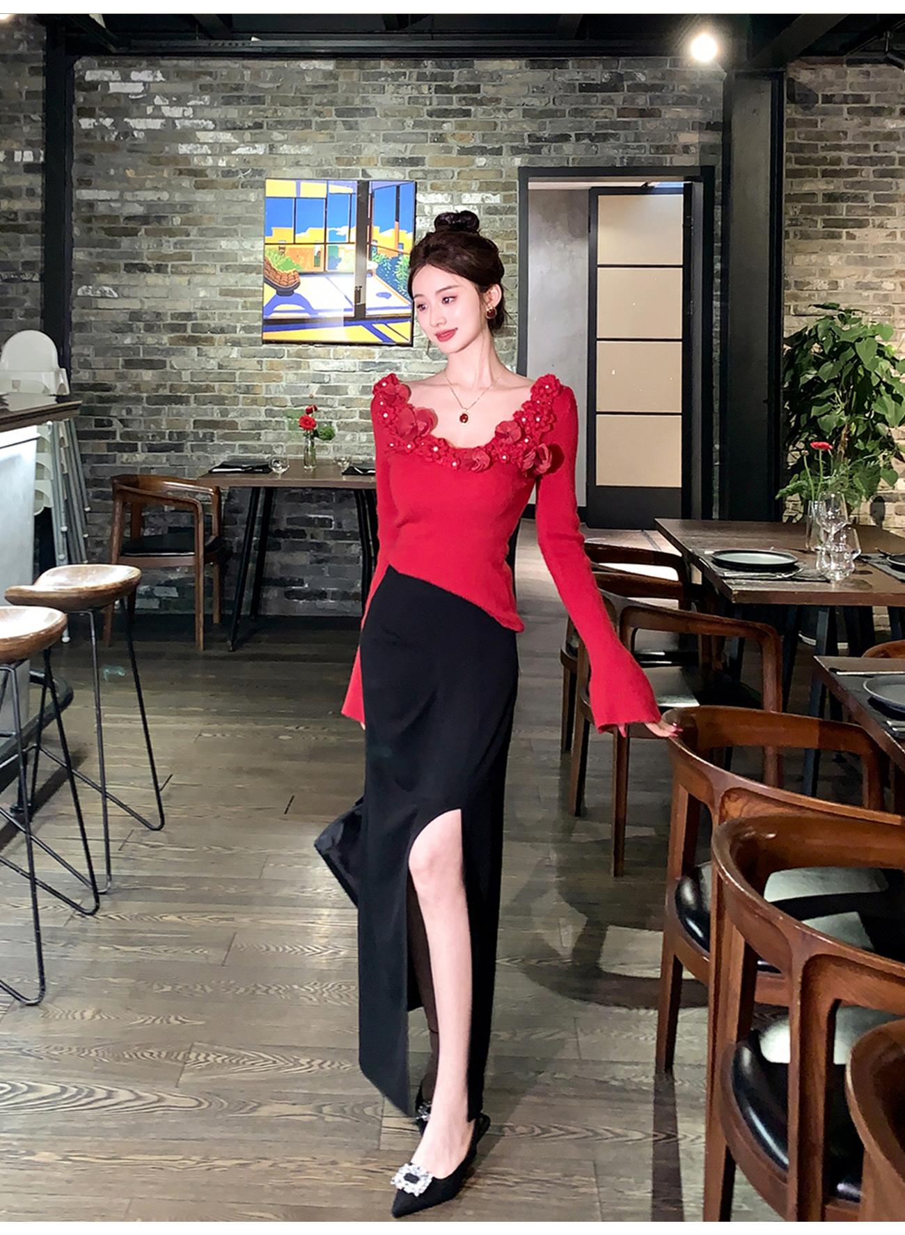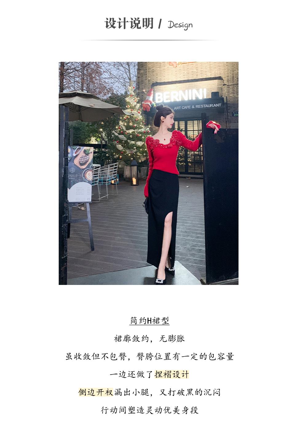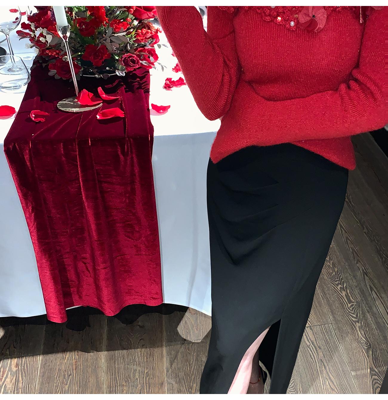 余潇潇【微醺探戈】灵动优美捏褶设计性感侧开衩醋酸H型气质半身裙