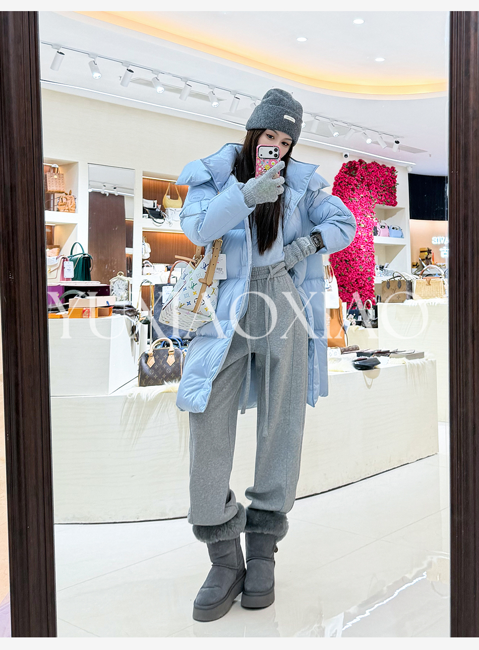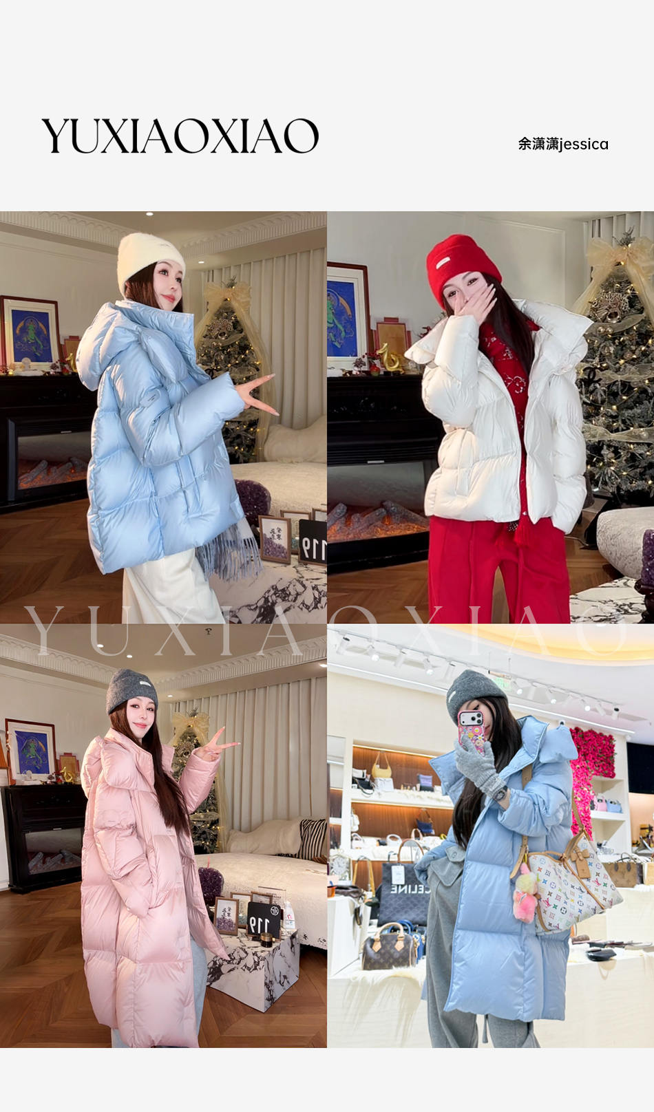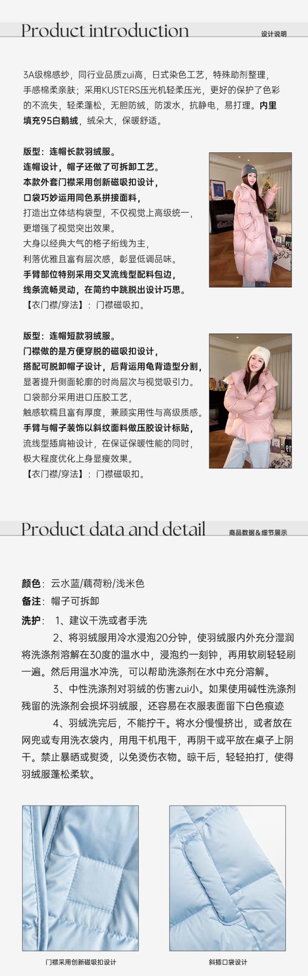 余潇潇【零度环游】波兰95白鹅绒三防时尚连帽长款宽松羽绒服保暖