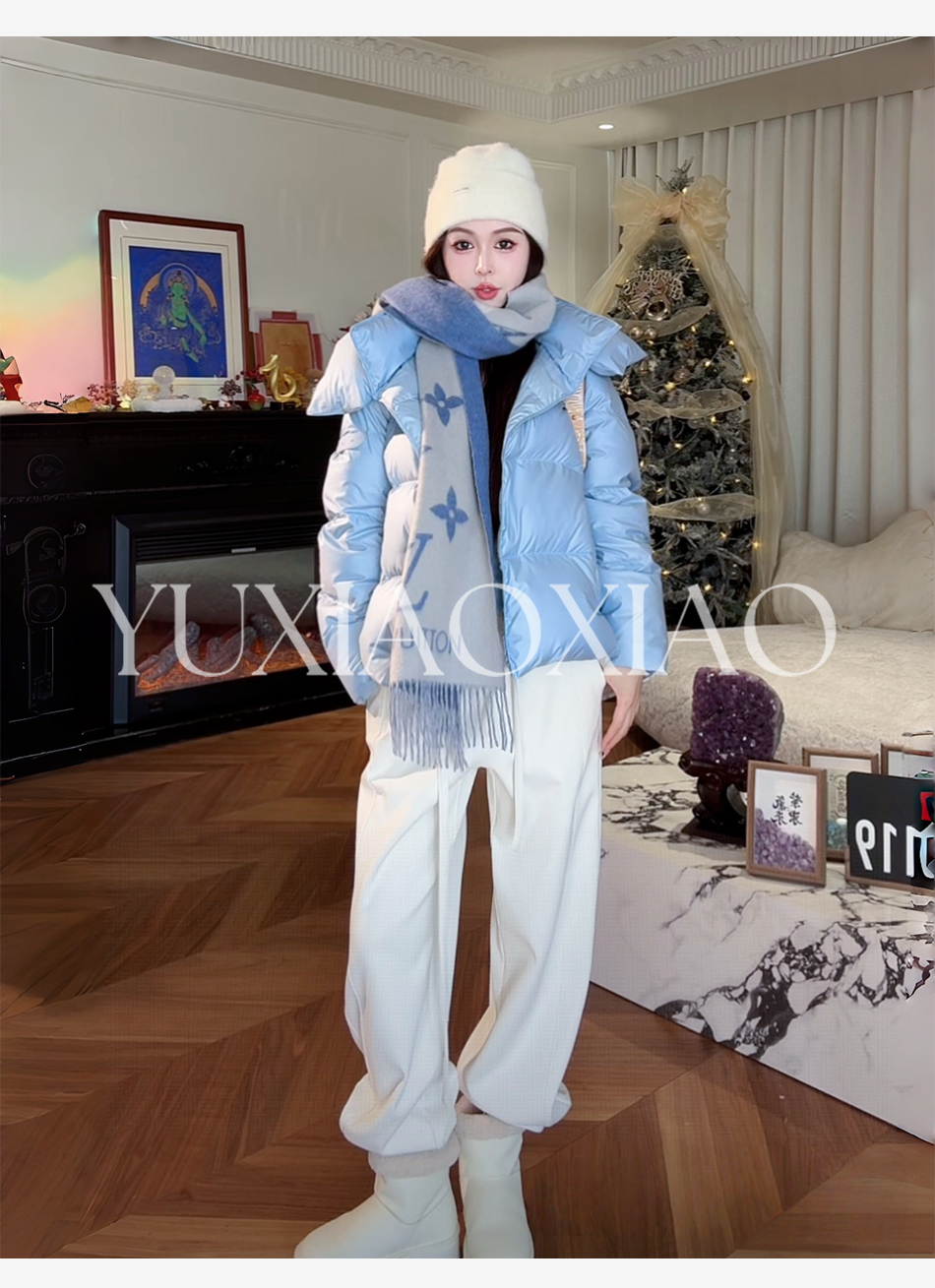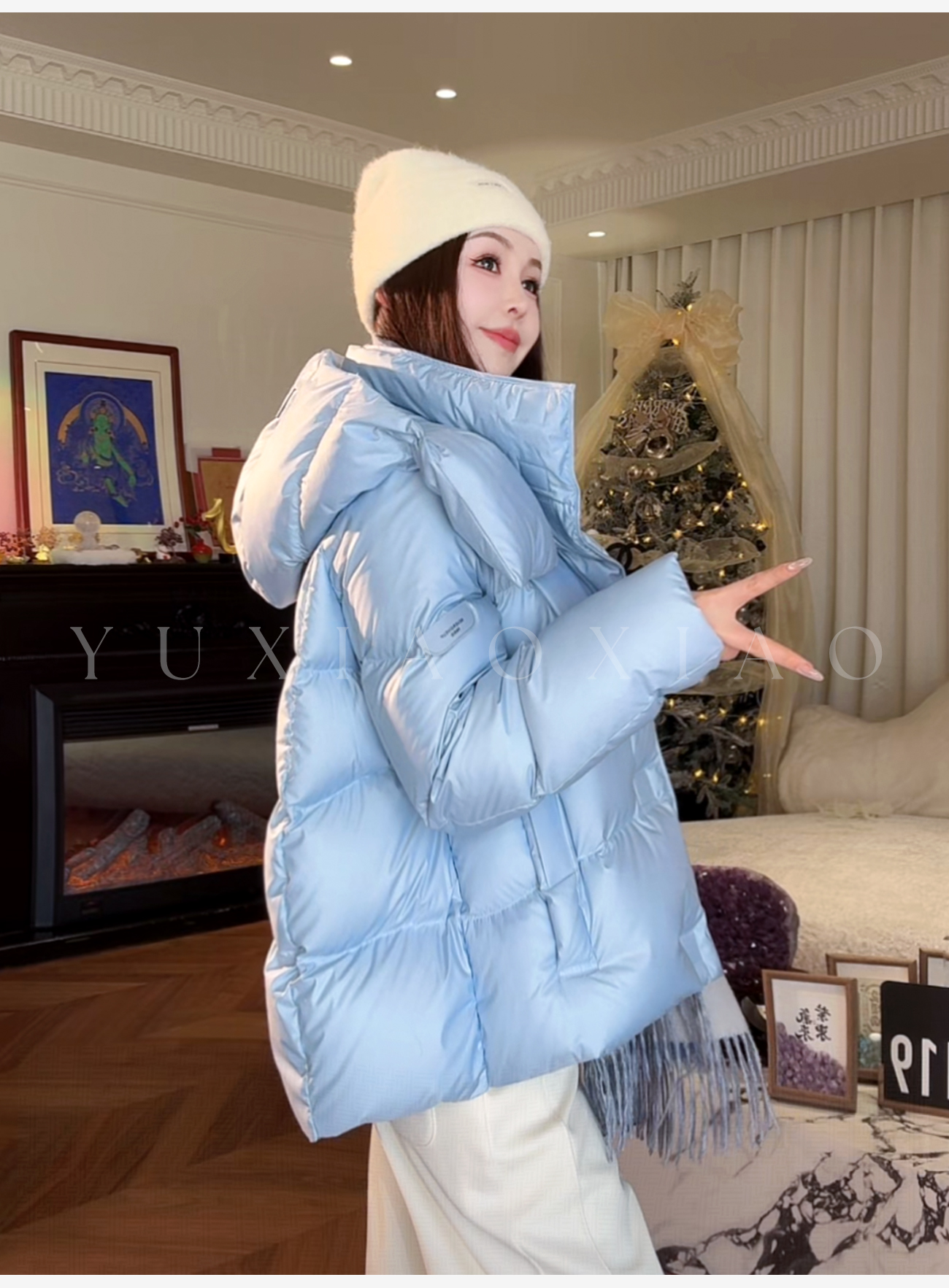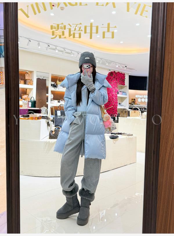 余潇潇【零度环游】波兰95白鹅绒三防时尚连帽长款宽松羽绒服保暖