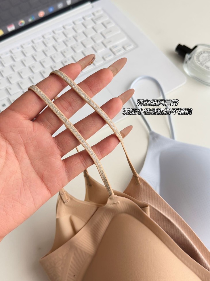 ✅裸感无痕: 无钢圈+一片式设计,像被云朵包裹,舒服到不想脱 ✅ 美背设计:U型后背+细闪肩带,单穿也超吸睛 ✅ 透气承托:无钢圈+透气杯垫,小胸也能自然有型 ✅ 裸色隐形:贴近肤色,搭配浅色系衣服也不怕透 日常通勤、约会、度假都能穿,美背小心机get✔