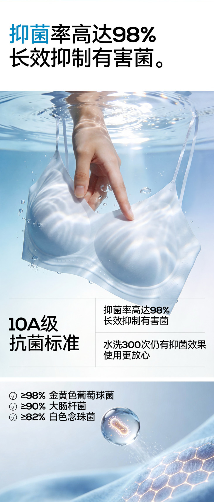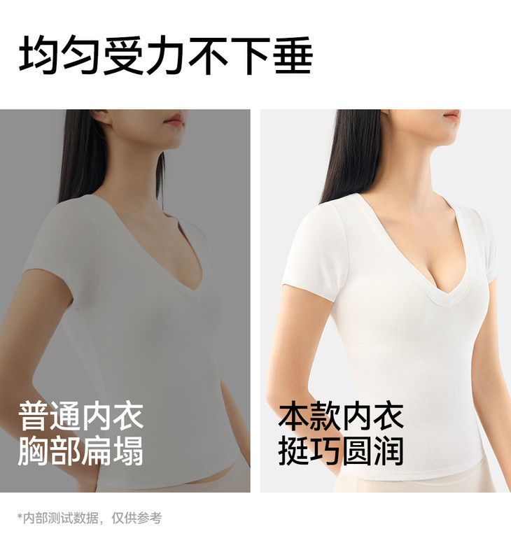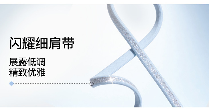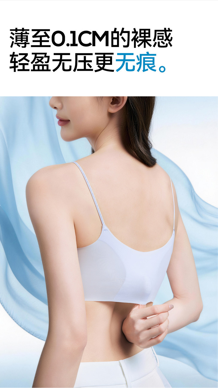 「裸感无痕,美背小心机」 一片式无痕剪裁,贴合肌肤如第二层皮肤。 细闪肩带+U型美背设计,单穿露背也高级, 让舒适与精致,成为日常的底气。