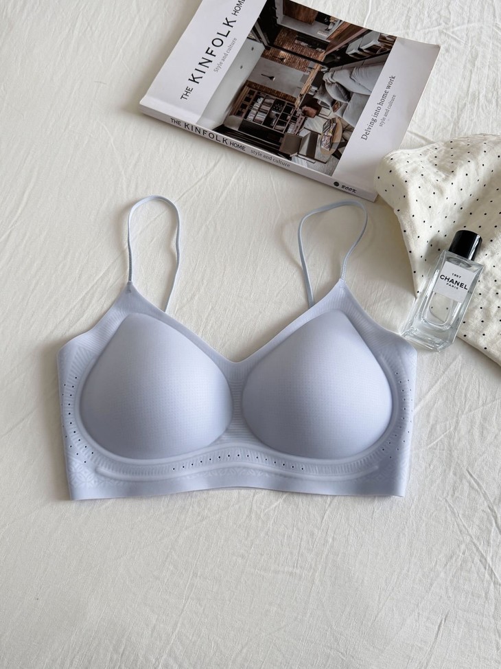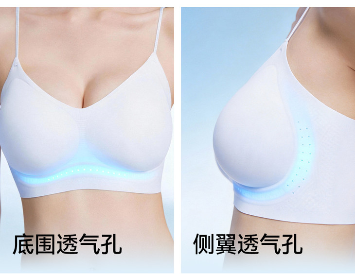 这件内衣真的太绝了! 一片式无痕工艺,无钢圈设计 杯面是透气网格纹理,杯垫还有细密透气孔,春夏也不闷汗! 细肩带还带细闪,露背穿搭超吸睛!