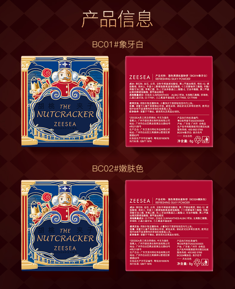 【空气粉体 轻拍柔焦】[小滋特惠]ZEESEA滋色清透丝盈粉饼(胡桃夹子版)8g