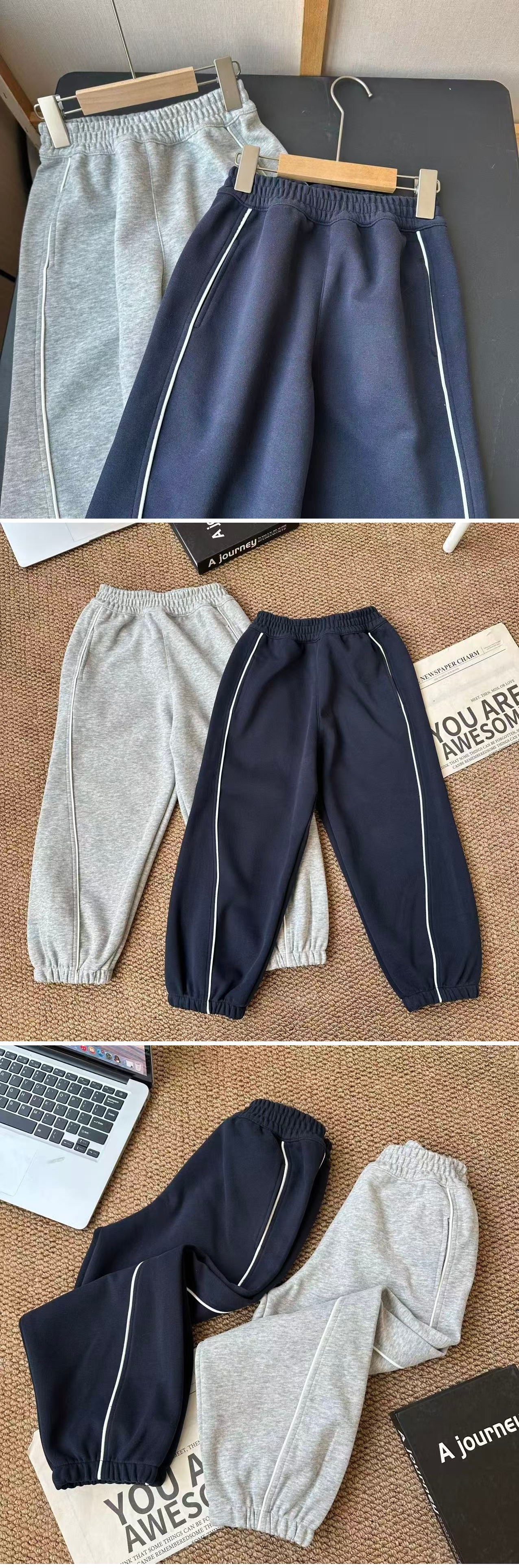 【MUBENMI木本木米2602压条百搭运动裤】纯色整体会更加简约,撞白压条,真的不要太有设计感啦~立体剪裁符合儿童的人体工程学,贴合身体曲线