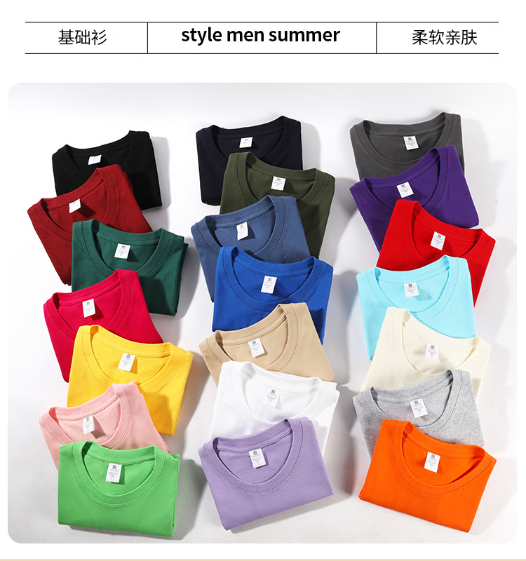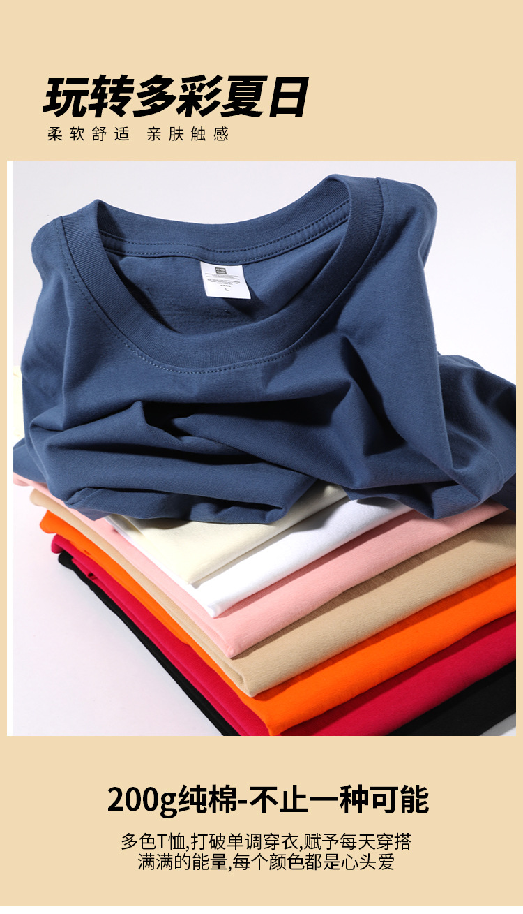 【多色可选!舒适透气】夏季重磅200克纯棉短袖男女同款纯色宽松基础款圆领t恤百搭情侣衫。xb